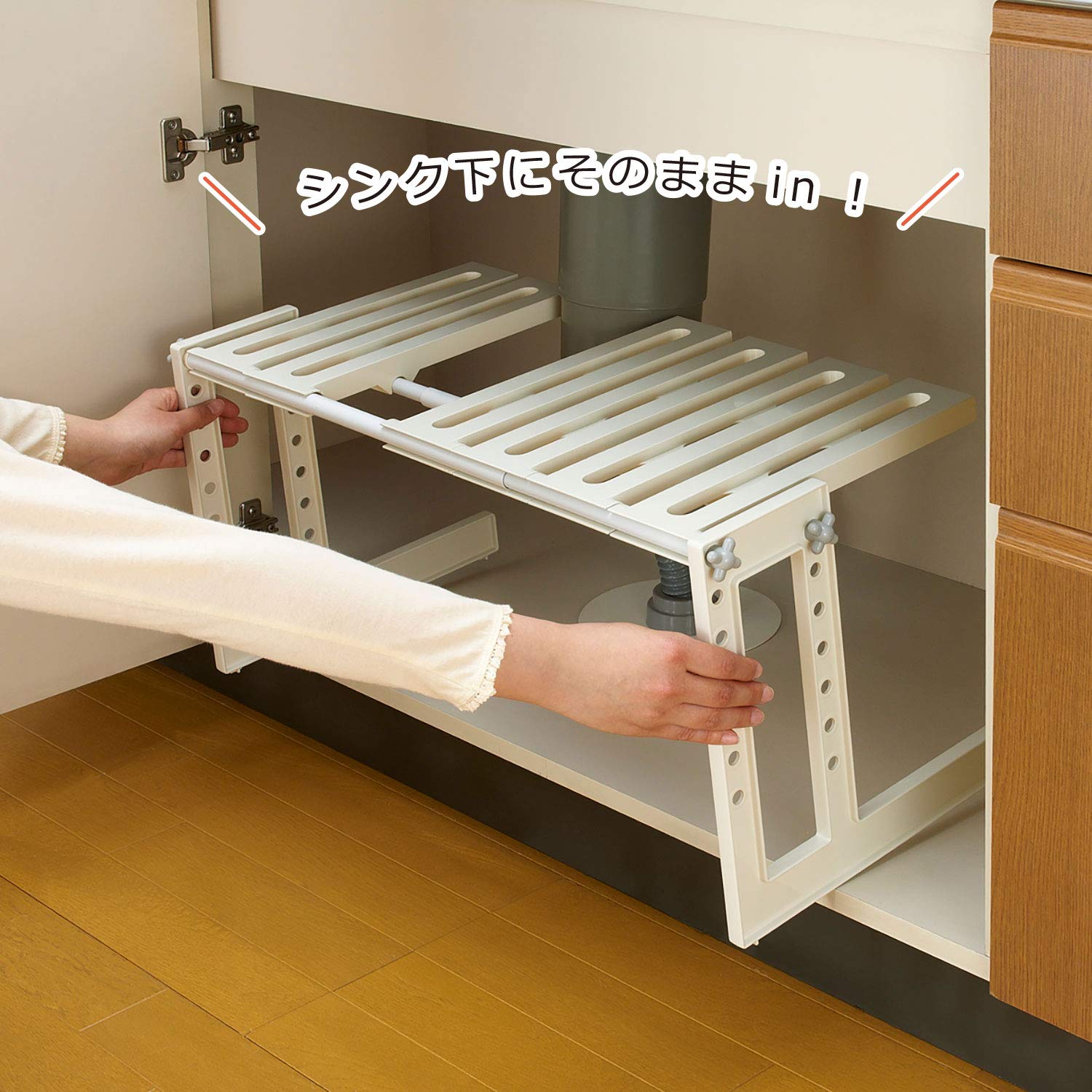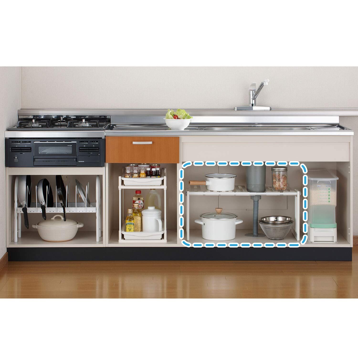 Belca キッチン 日本製 収納 そのままin シンク下フリーラック1段 伸縮タイプ 幅50~75×奥行30.3×高さ30.9cm ホワイト MT1-EX