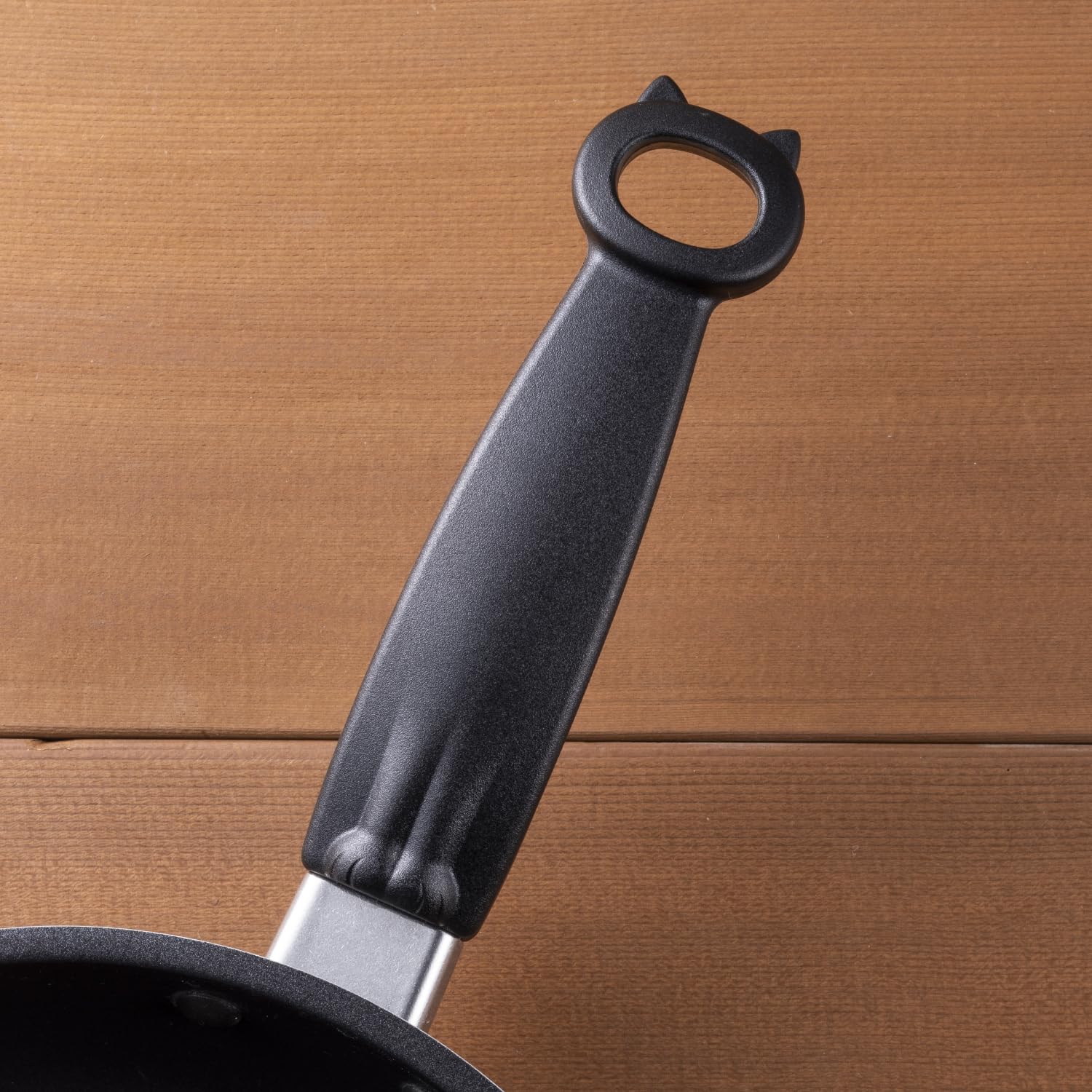 おすわり猫モチーフのにぎりやすいハンドルが特長のフライパン。