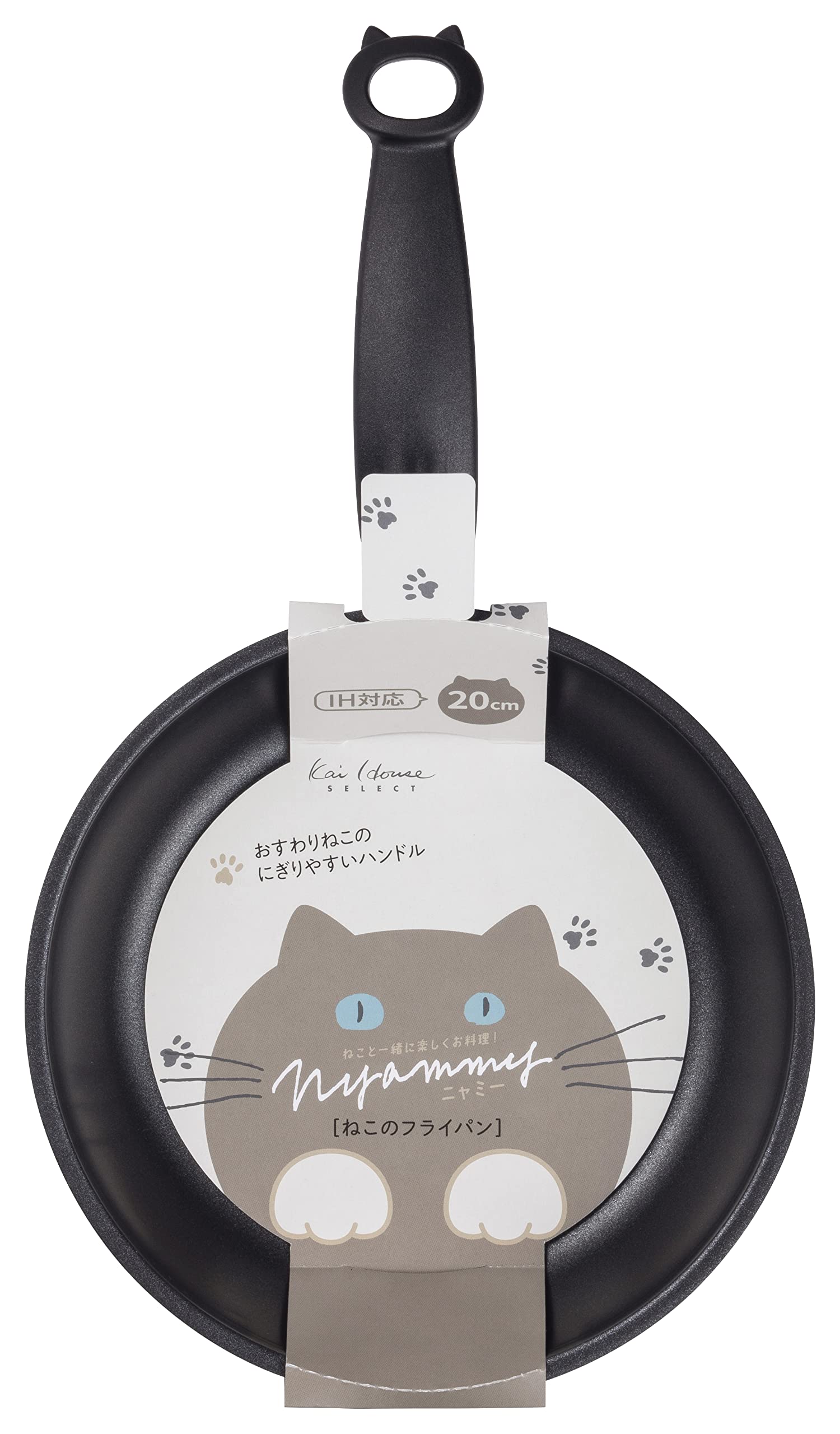 貝印 KAI ねこの フライパン 20cm IH 対応 Nyammy ウォーム グレー DW5662