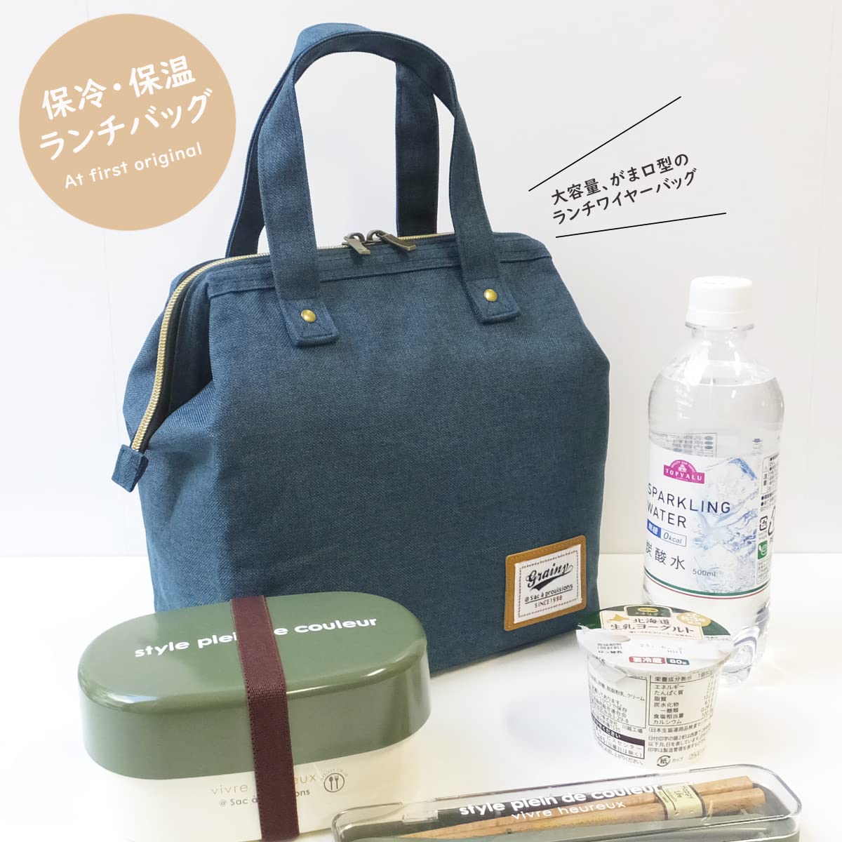 アットファースト ランチバッグ 保冷 保温 手提げ かわいい レディース お弁当袋 おしゃれ 弁当バッグ お弁当入れ 通勤 通学 メンズ ランチボックス ランチ 大きめ 大容量 保冷バッグ シンプル Lサイズ ネイビー AF6049