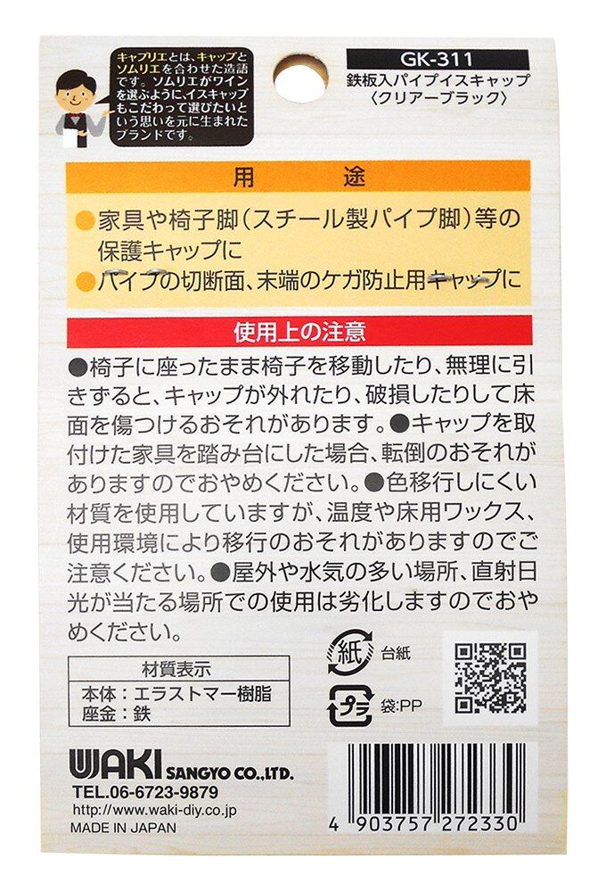 和気産業 鉄板入パイプイスキャップ クリアーブラック 10mm用 椅子 脚 足 イスゴム 保護キャップ 傷防止 GK-311 4個入