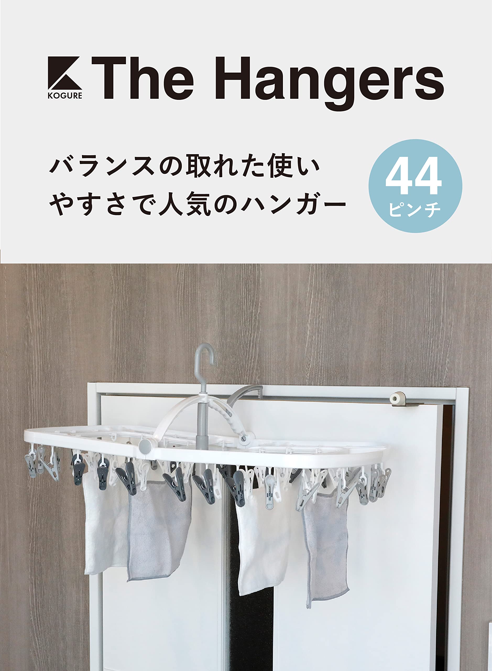 シービージャパン(CB JAPAN) 洗濯物干し ピンチハンガー 44ピンチ ホワイト×グレー 部屋干しに便利なドア掛けフック 高い所に掛けやすい伸びるグリップ 絡まりにくいピンチ構造 干し分けピンチ 隠し干し2重フレーム ランドリーハンガー44P Kogure THE HANGERS