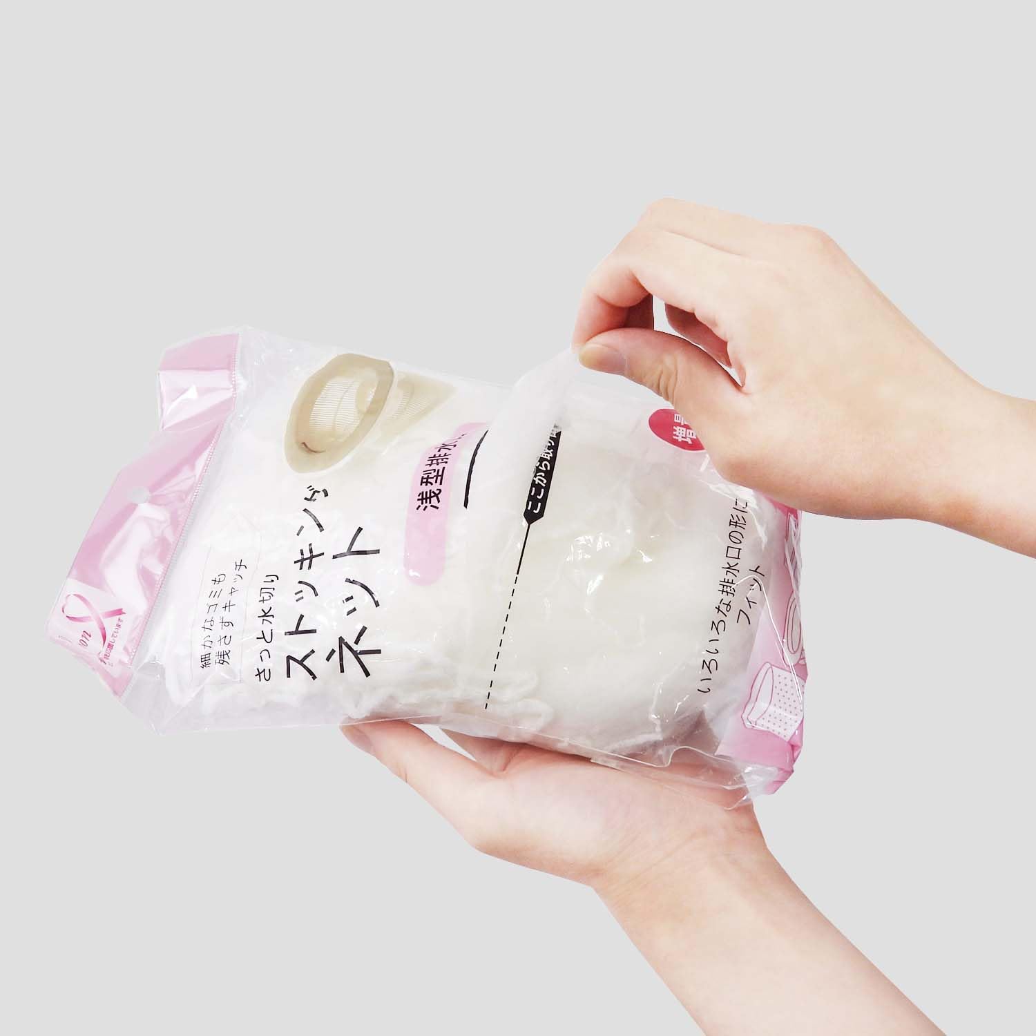 伸びるストッキングタイプなので、浅型排水口のサイズにかかわりなく簡単装着