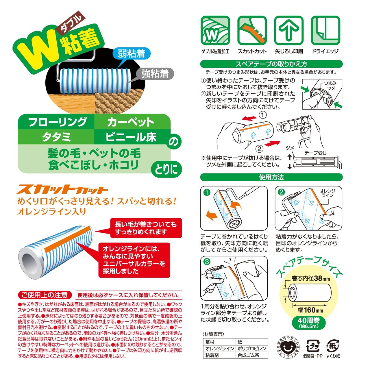ニトムズ コロコロ スペアテープ フロアクリン SC 40周 4巻入 テープ 替え スパっと切れる フローリング カーペット 畳 ペットの毛 ダニ 花粉 160mm幅 C4428