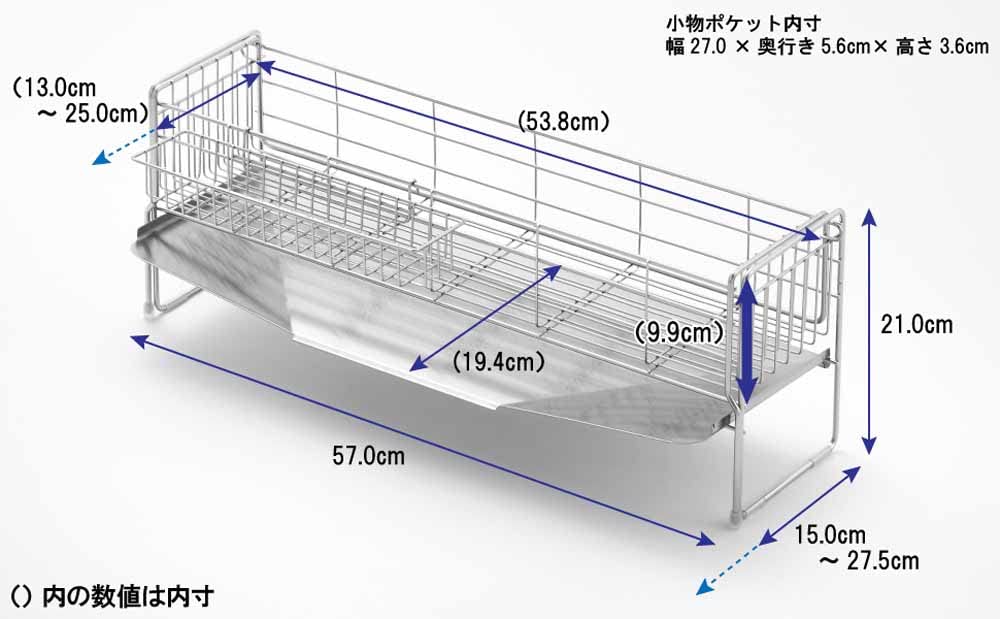 サイズ(約):幅15~27.5×奥行57×高20.8cm