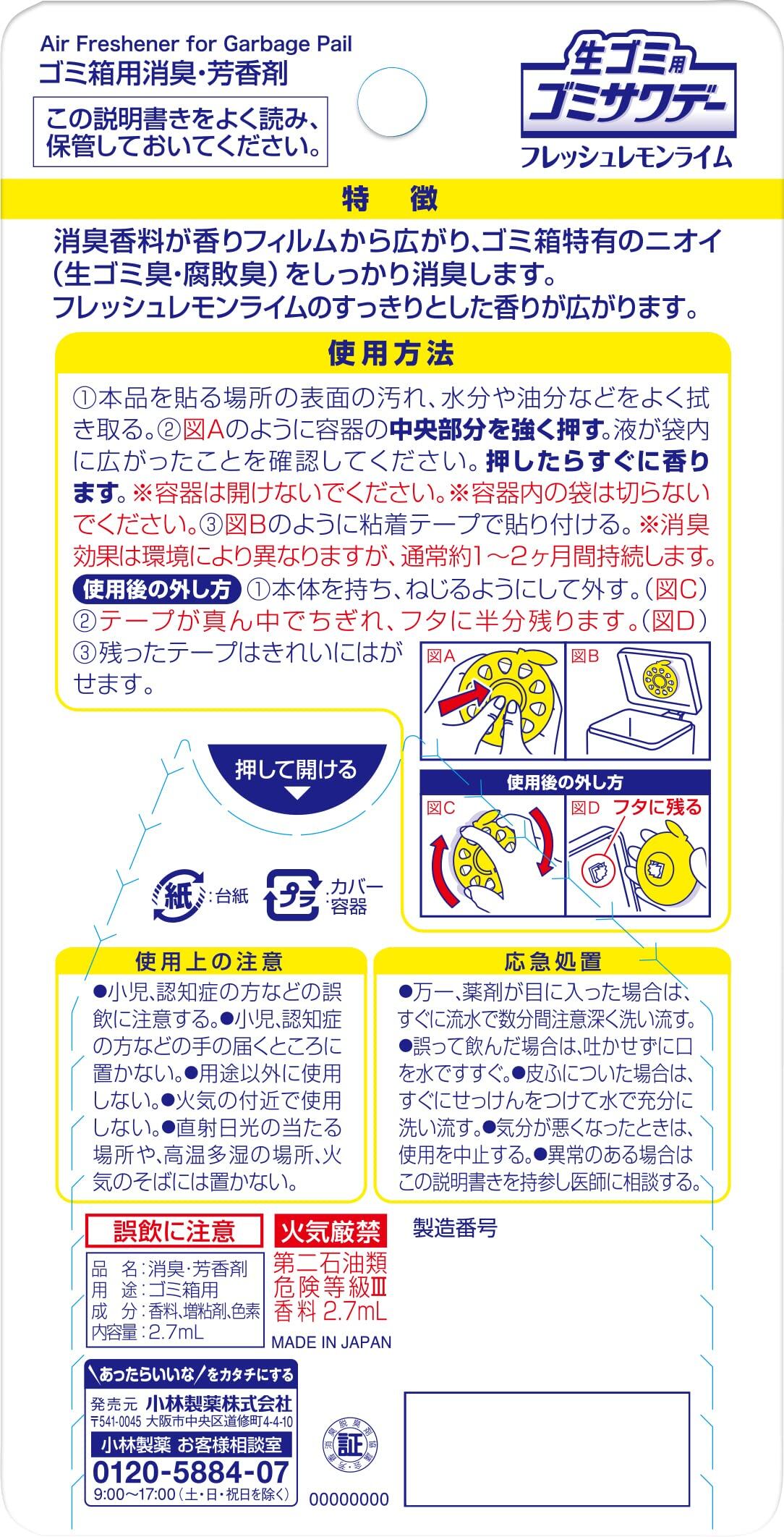 【まとめ買い】生ゴミ用 ゴミサワデー ゴミ箱 生ごみ 消臭 芳香剤 フレッシュレモンライムの香り 2.7ml×5個 小林製薬
