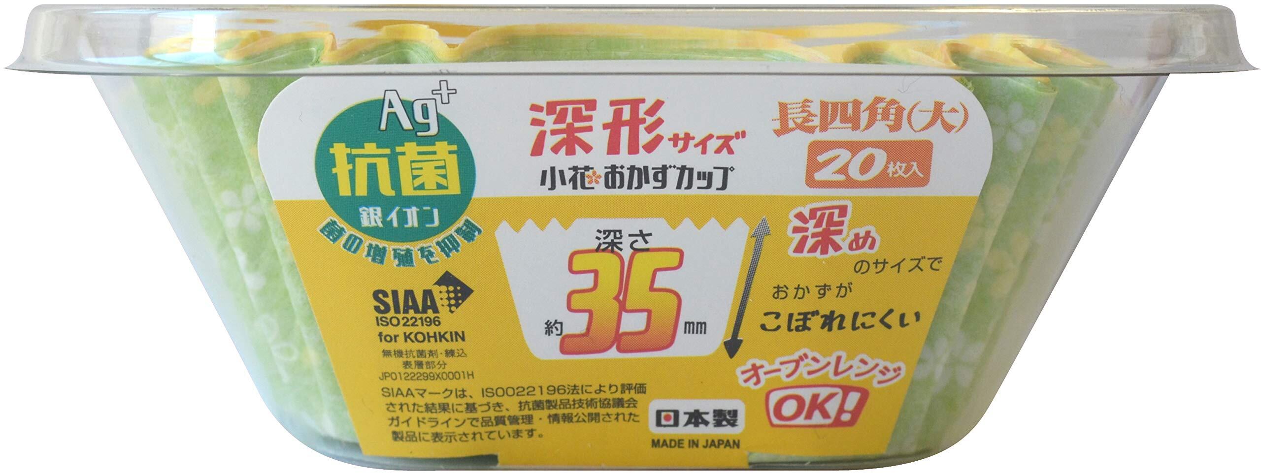 ヒロカ産業 抗菌小花おかずカップ 深形長四角(大) 20枚入 深さ約35mm 抗菌 オーブンレンジ可 日本製