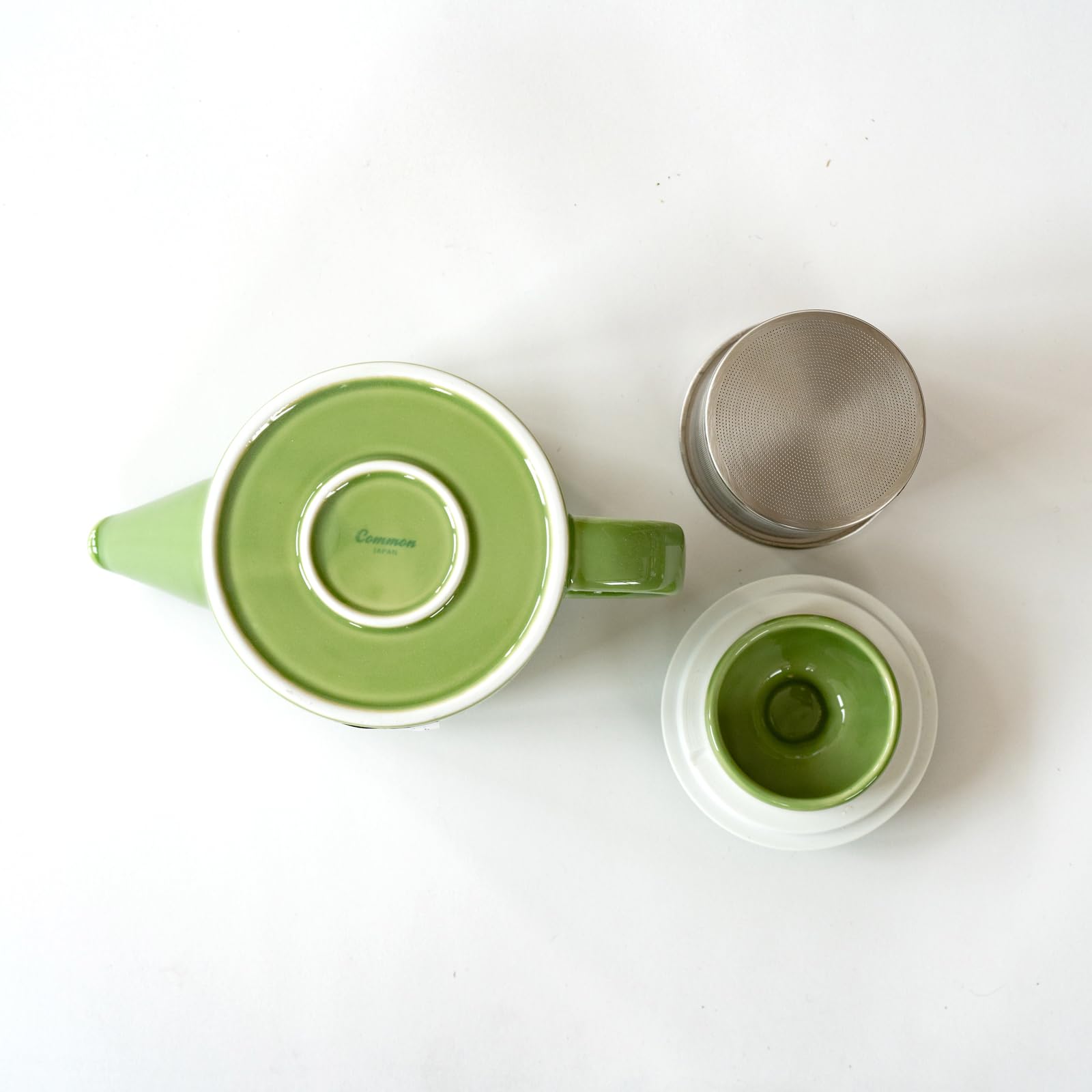 波佐見焼 「 コモン 」 ポット グリーン (スーパーステンレス茶こし付) 500ml 13875