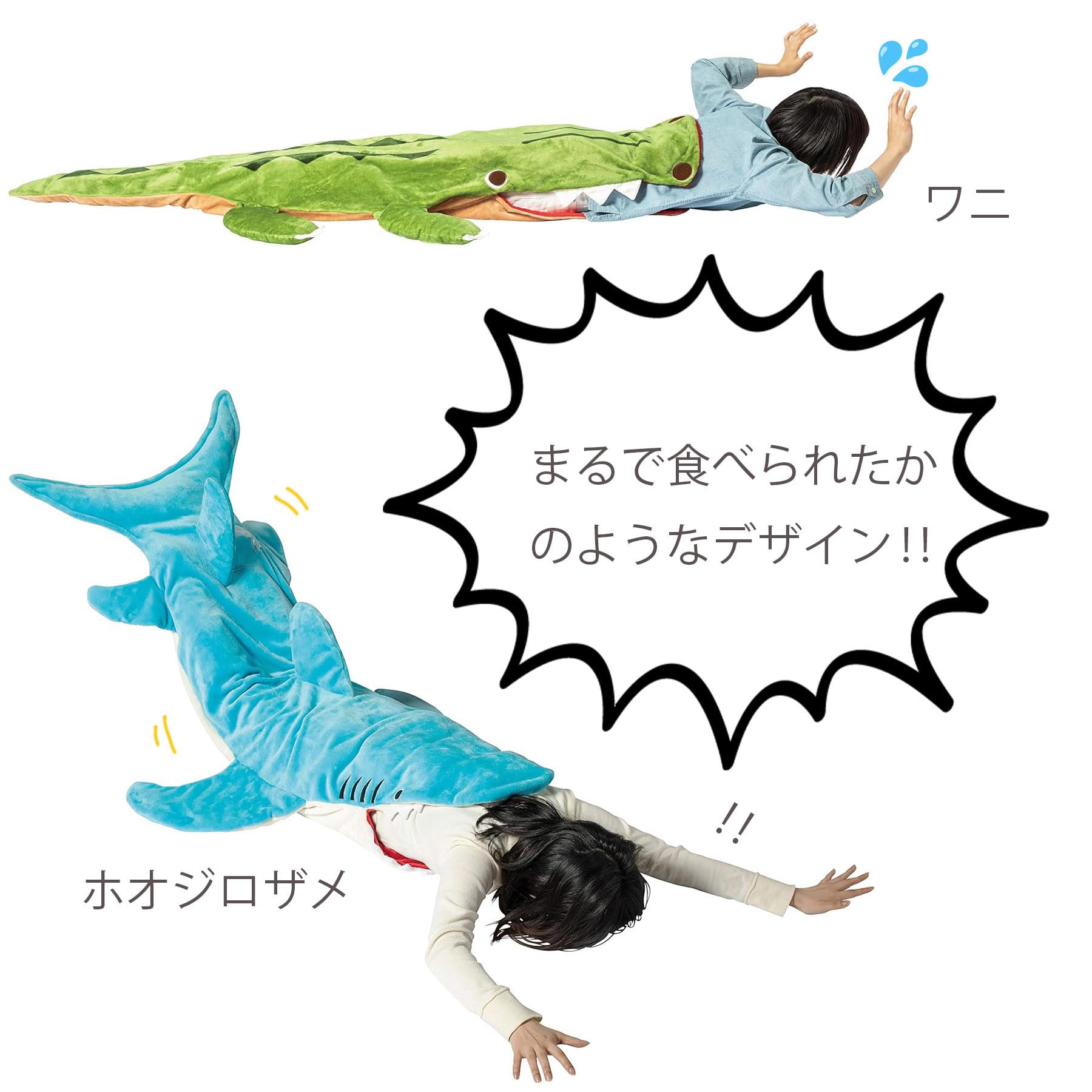 まるでホオジロザメに食べられているかのようなフォトジェニックな穿く毛布です。