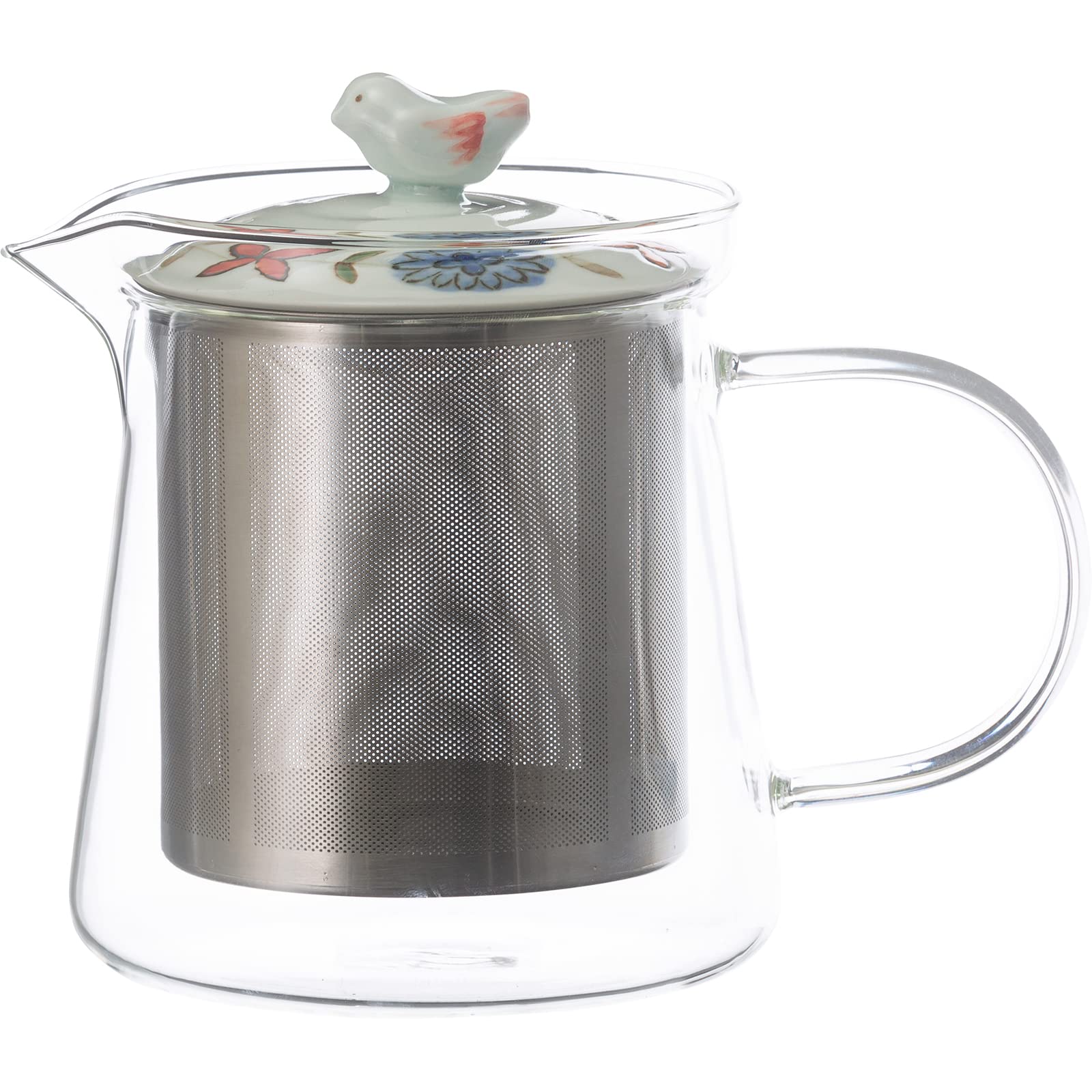 西海陶器 波佐見焼 一誠陶器 ガラス ティーポット 大 約600ml (スーパーステンレス茶こし付) ブルーメ レッド 日本製 20424