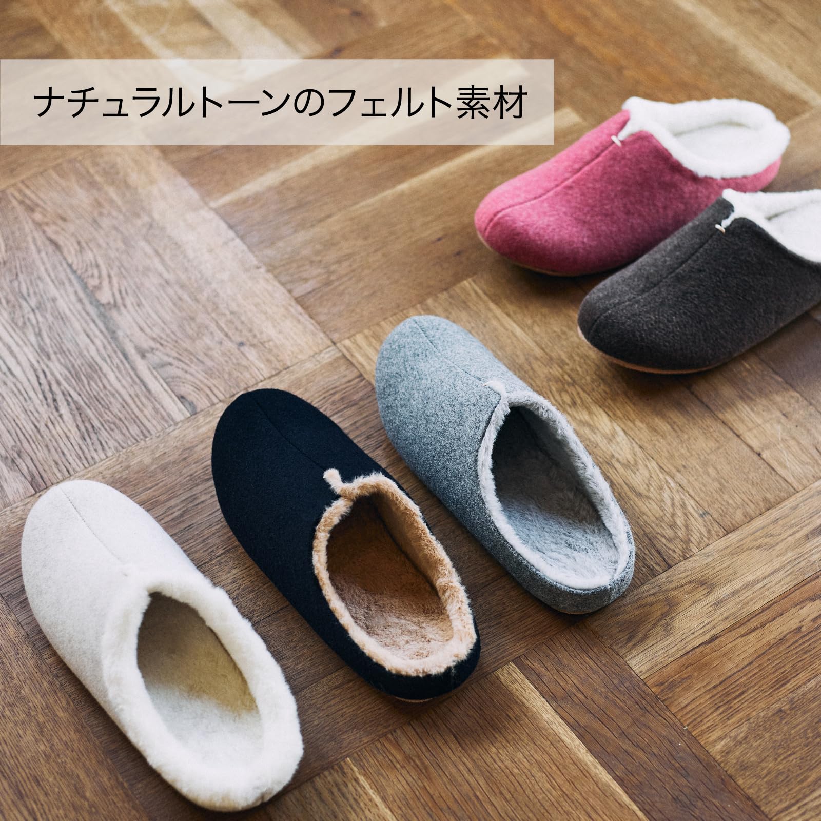 room'sのスタイリッシュさはそのままに、やさしいフェルト生地と高密度なボリュームボアで包みました。寒い日の足元にしっかりと寄り添います。
