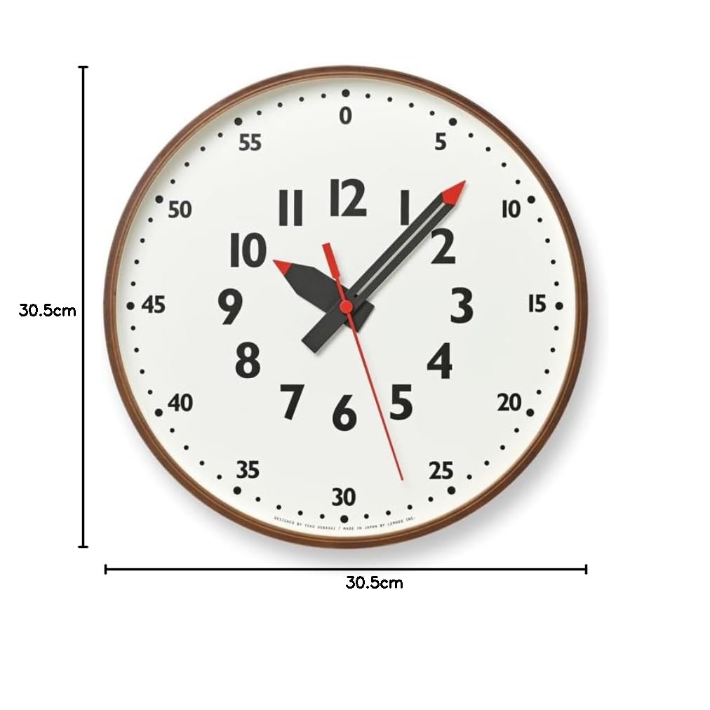 【処分セール】レムノス 掛け時計 アナログ 知育時計 天然色木地 茶 fun pun clock ふんぷんくろっく YD14-08 M BW Lemnos