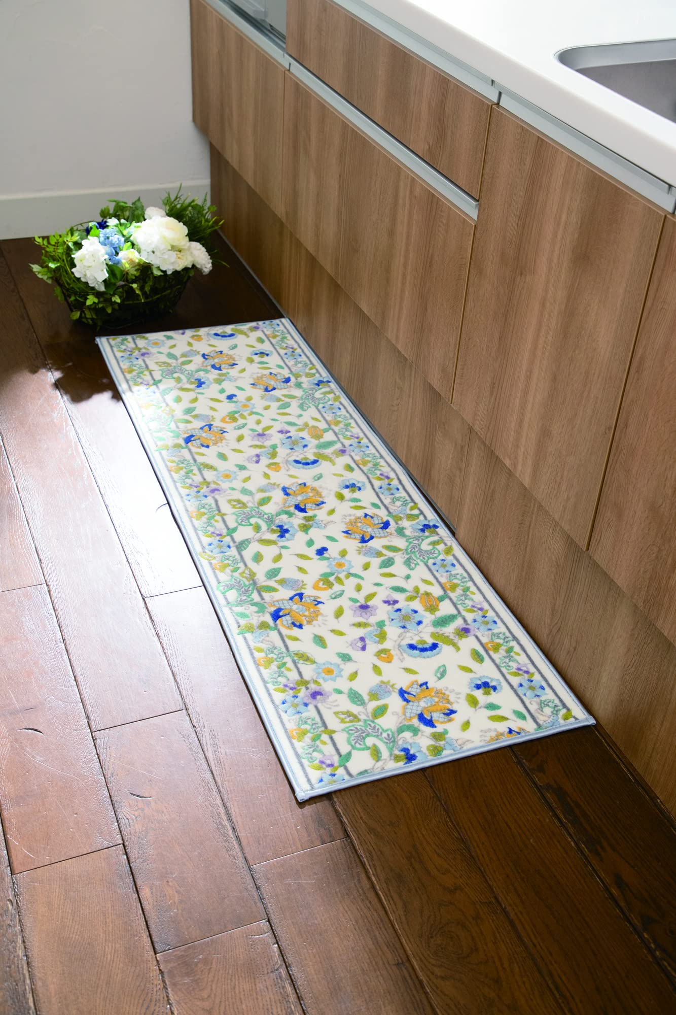 多色プリントでミントンらしい清潔感のある上品で華やかな彩色を表現したキッチンマットです