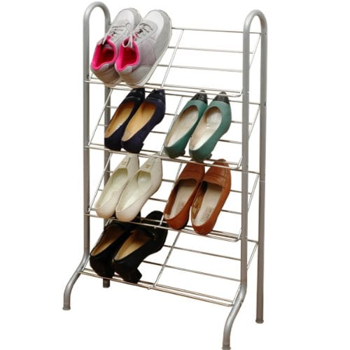 [山善] シューズラック 幅54×奥行24×高さ96cm 4段 スリム 8足 アジャスター付き シルバー SR-544(SG)