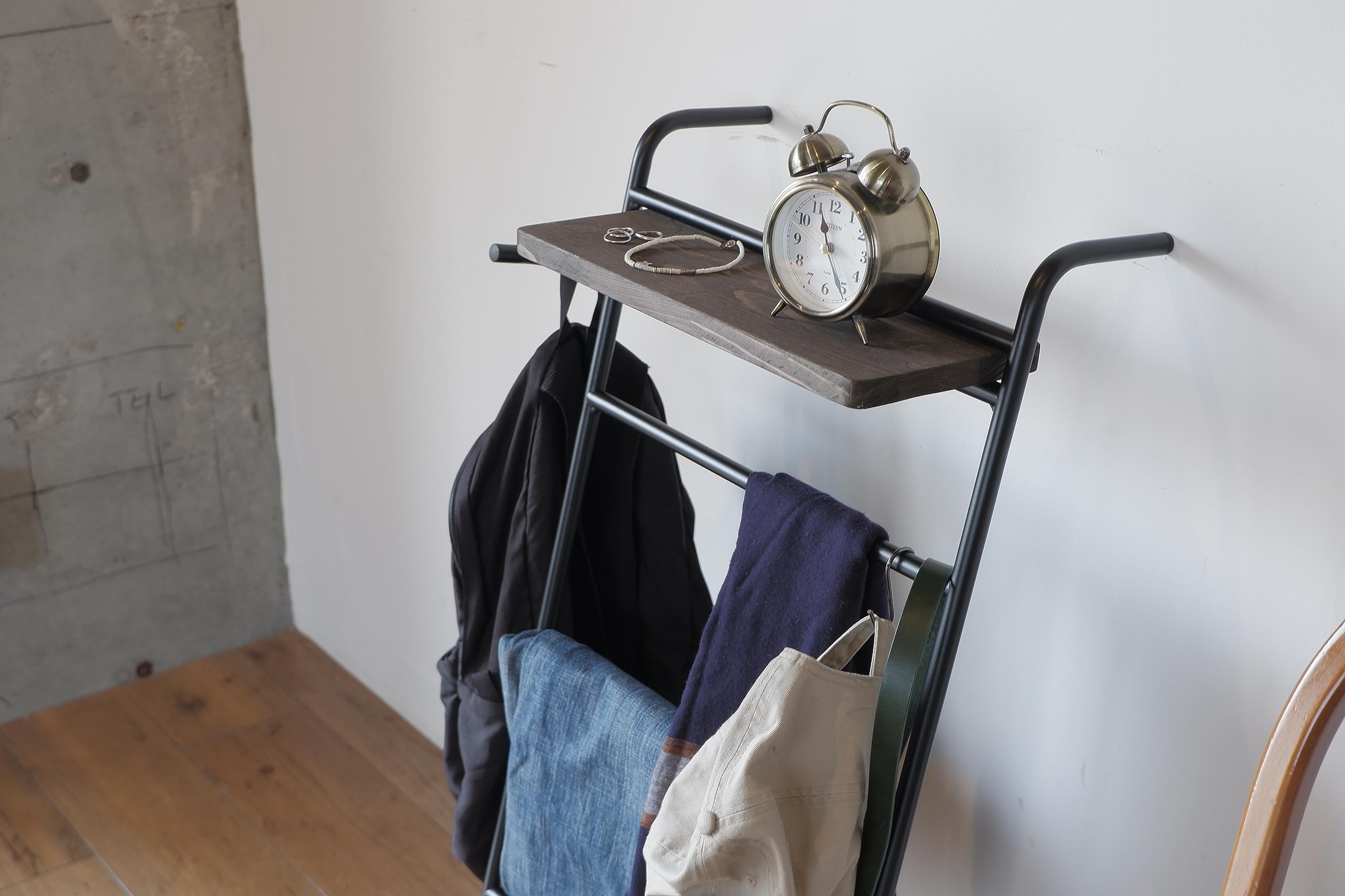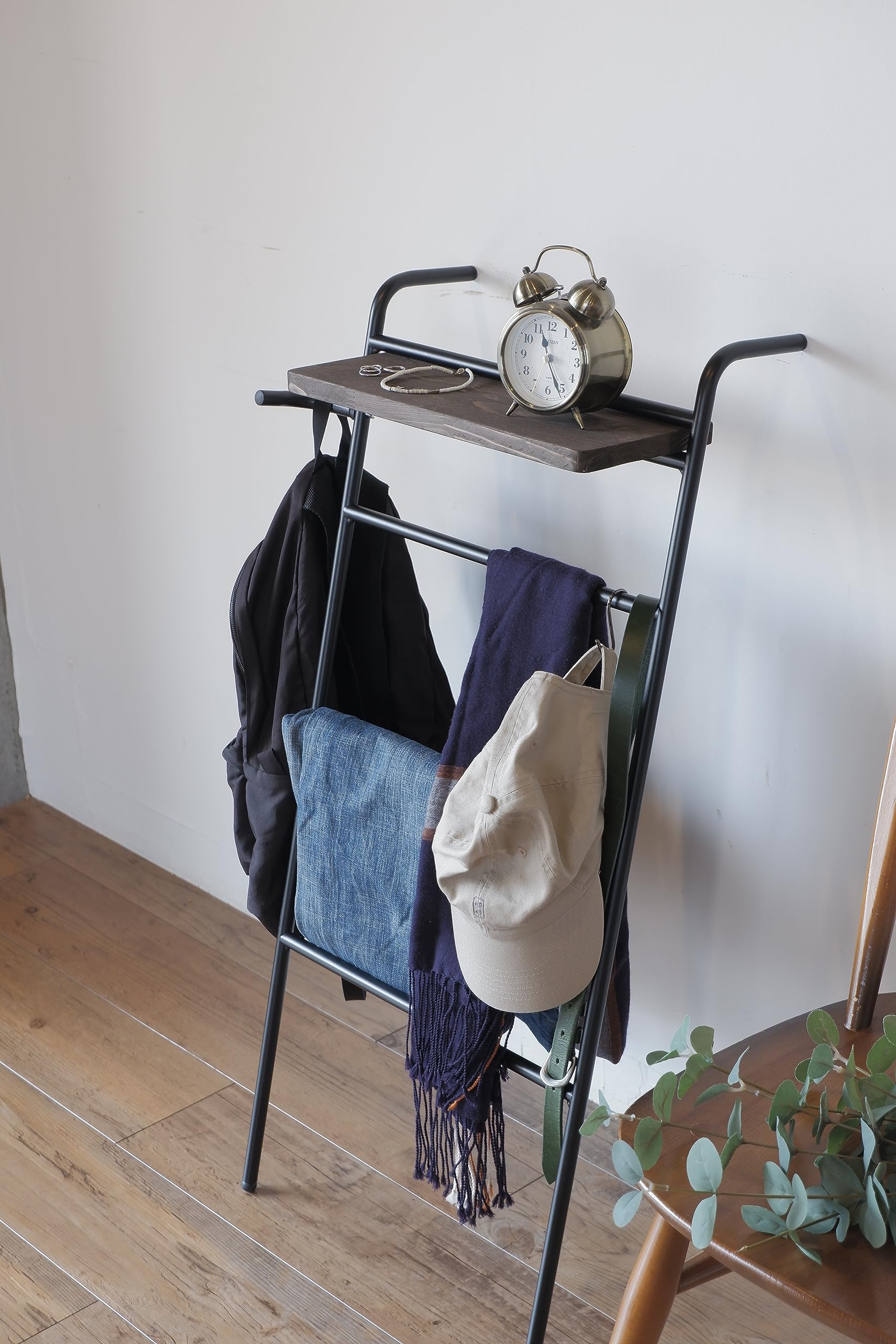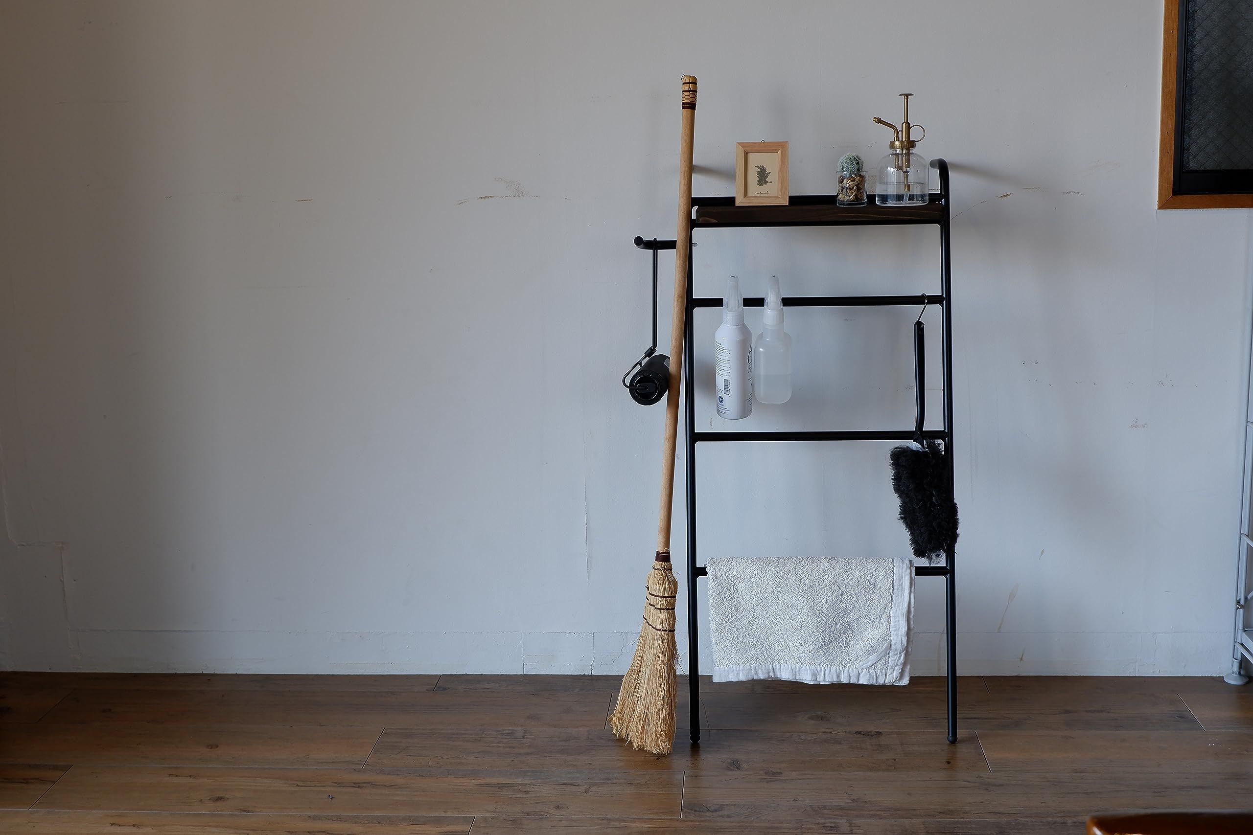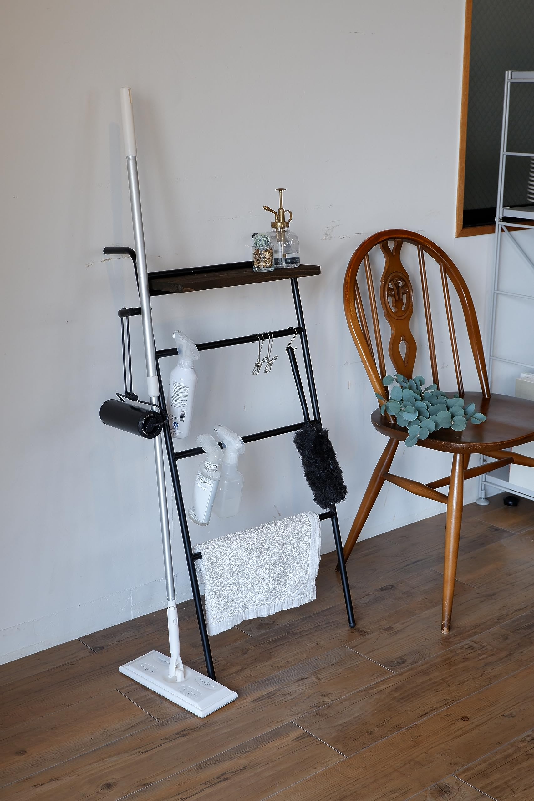立て掛け式のアイアン製ラダーラック。掃除道具などをディスプレイして見せる収納に。スリムな設計なので、玄関やサニタリーなどに簡単に設置できます。