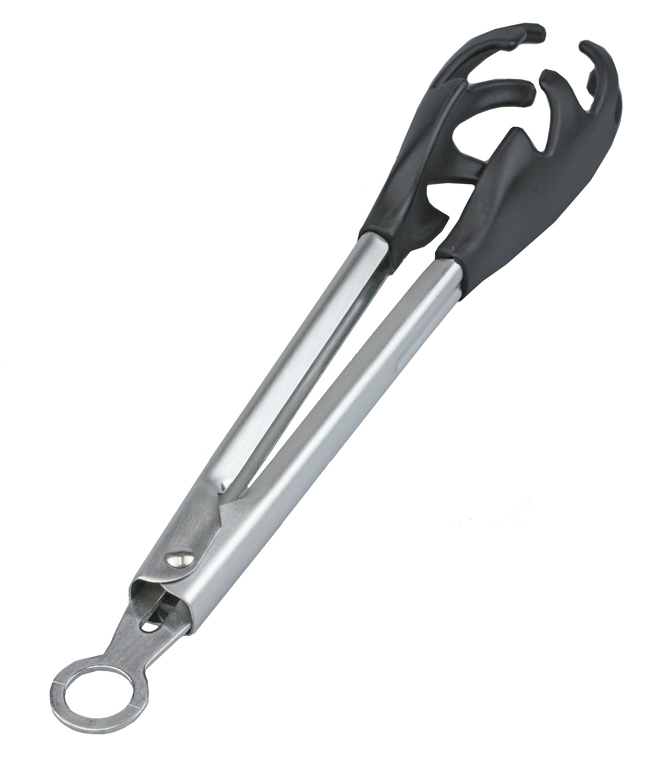 フックを引き上げるとトングが閉じるロック機能付で収納に便利