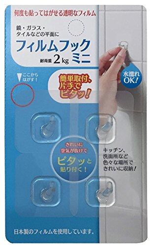 鏡・ガラス・タイルなどの平面に何度も貼ってはがせるフィルム一体型フック。