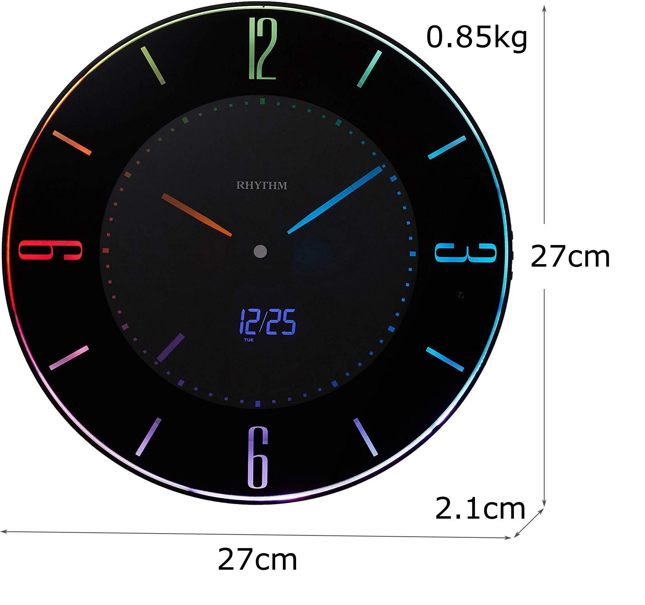 リズム(RHYTHM) 掛け時計 置き時計 電波時計 365色 LED 推し色 変更機能付き 黒 イロリア (Iroria) 8RZ197SR02 φ27x2.1cm