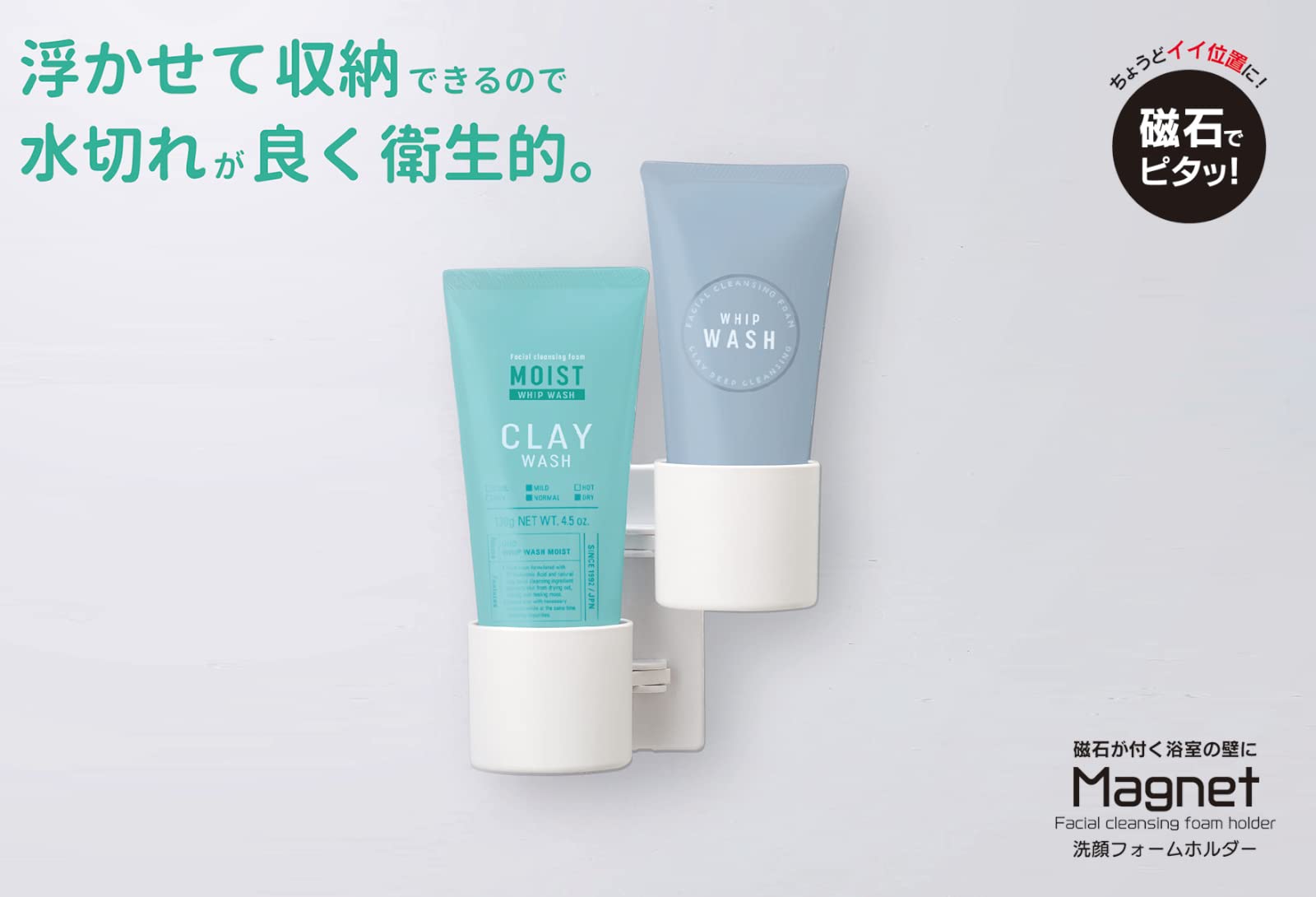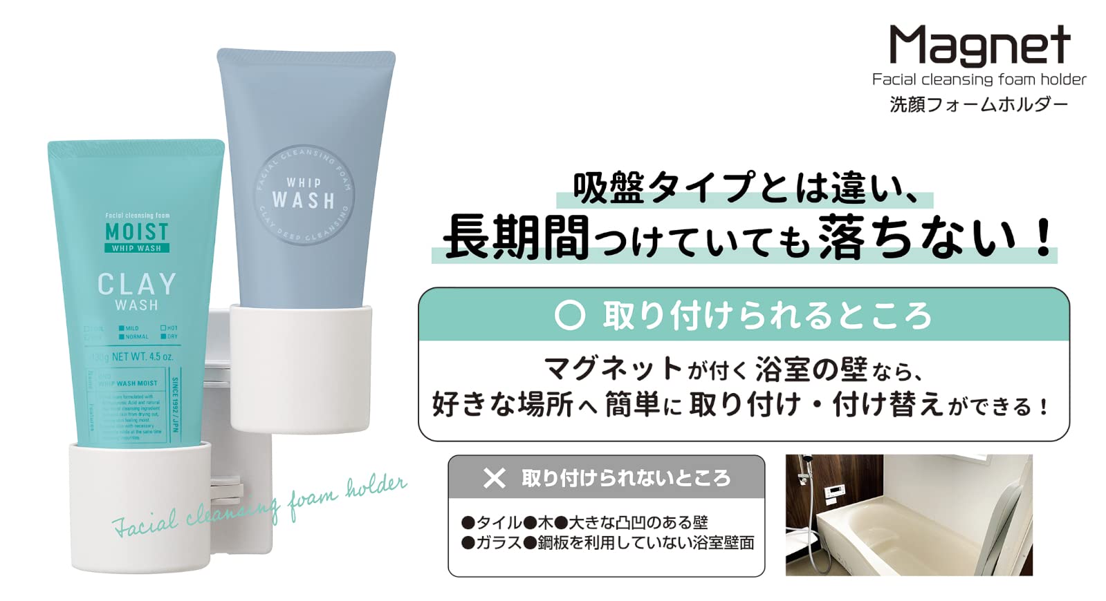 ●本製品に収納できる洗顔フォームは直径約5cm以内のもので、それ以上のサイズでは収納できず落下の可能性もあります。