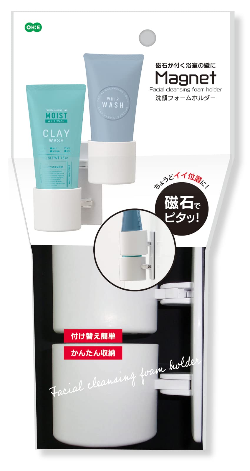 オーエ マグネット ホルダー ホワイト 長さ10.3cm×幅5.6cm×高さ8cm 洗顔フォームホルダー 浴室 磁石 収納