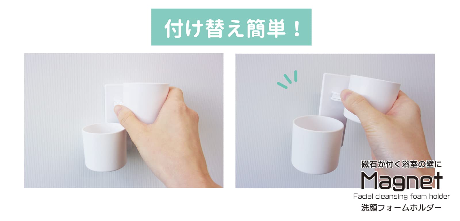 ・マグネットが付く浴室の壁なら、好きな場所へ簡単に取り付け、取り替えが出きます。
