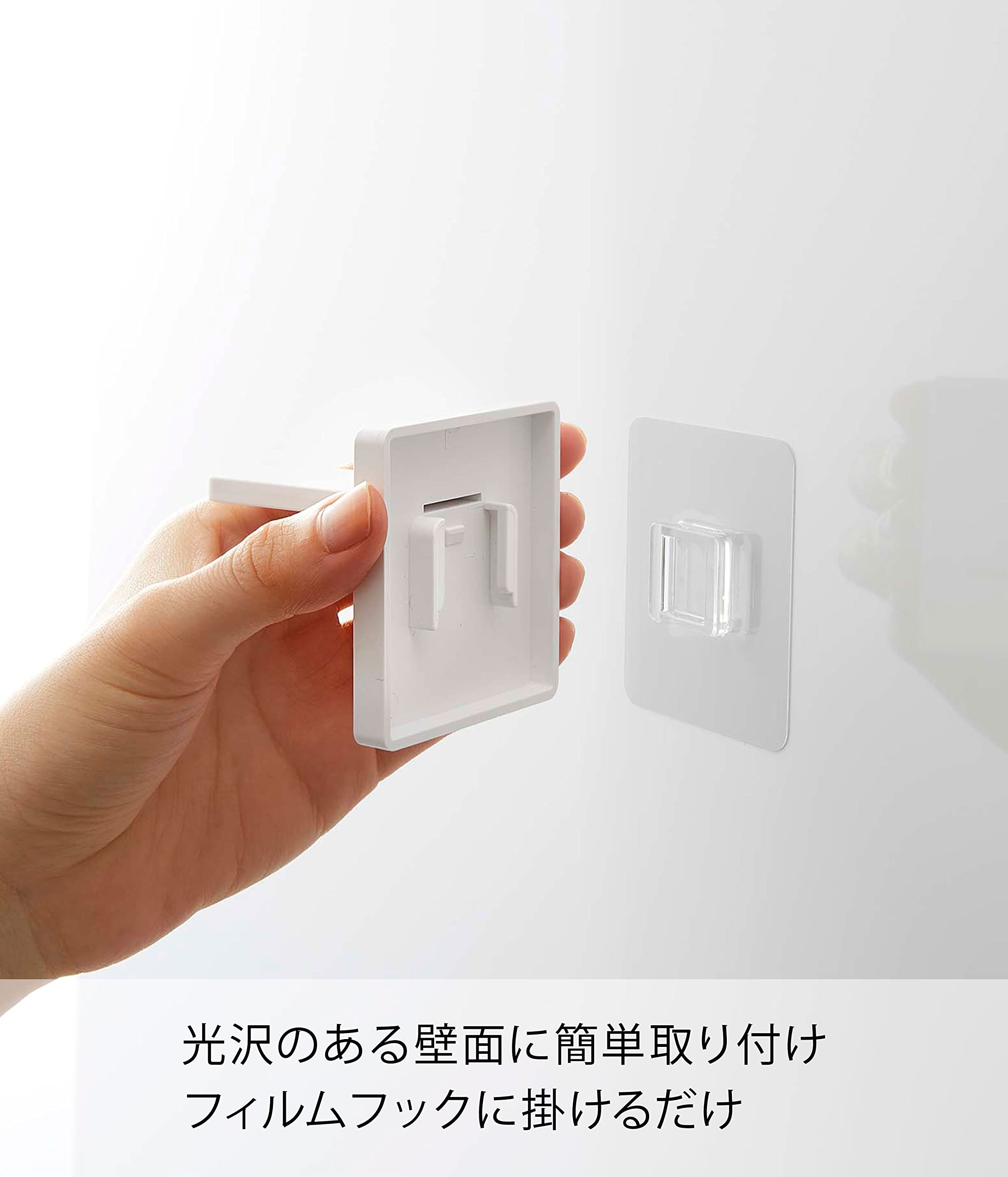 光沢のある壁面にフィルムフックで簡単取り付け。