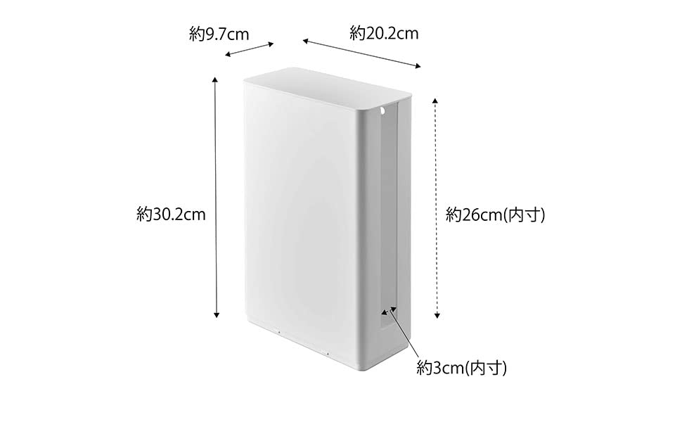 商品サイズ:約W9.7XD20.2XH30.2(蓋含む)cm ▪内寸:収納部:約W8.8×D19×H28.5cm スリット穴:約W3×H26cm