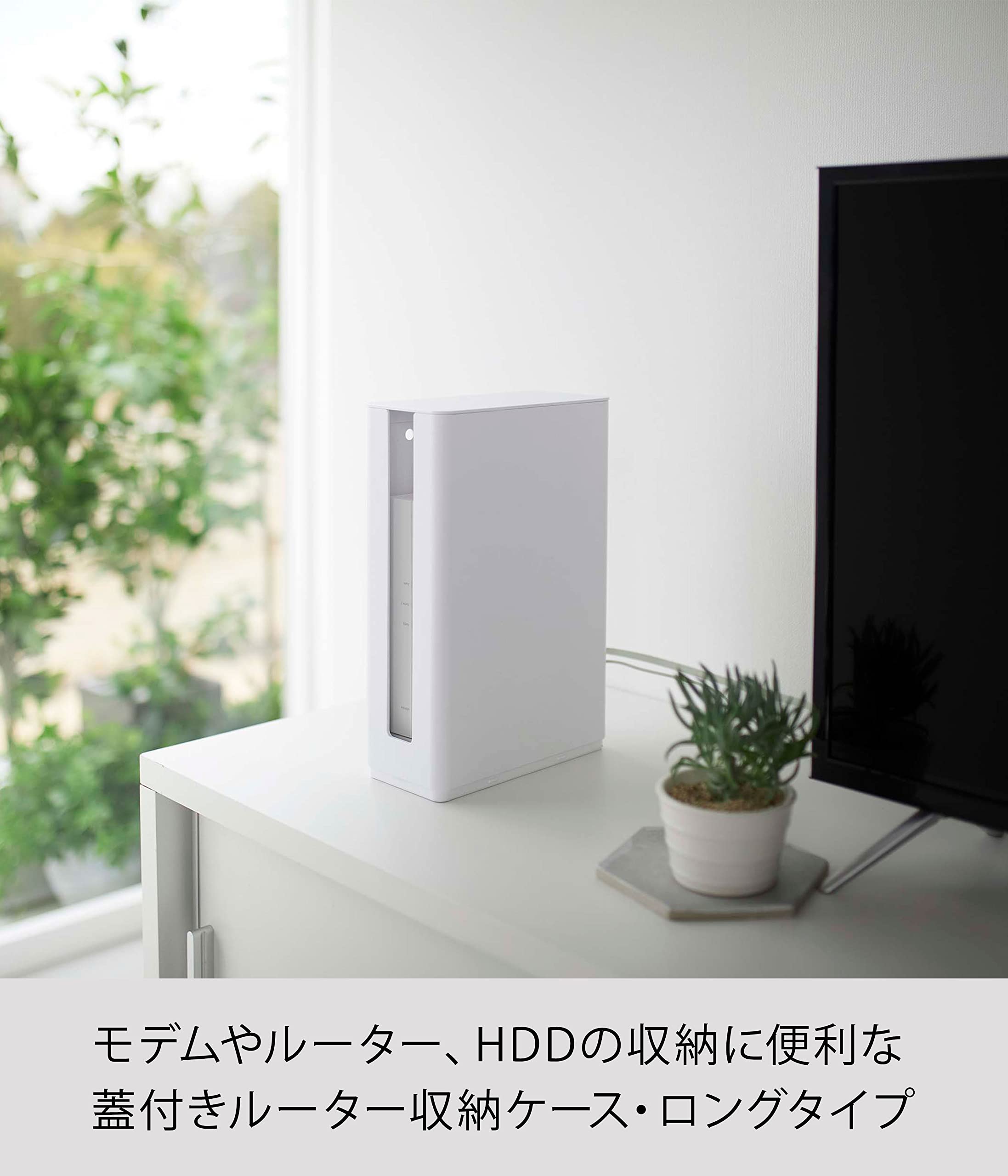 【大特価商品】山崎実業(Yamazaki) 重ねられる スリム 蓋付き ルーター収納 ケース ロング ホワイト 約W9.7XD20.2XH30.2(蓋含む)cm スマート smart 浮かせて収納できる デットスペースを有効活用 5750