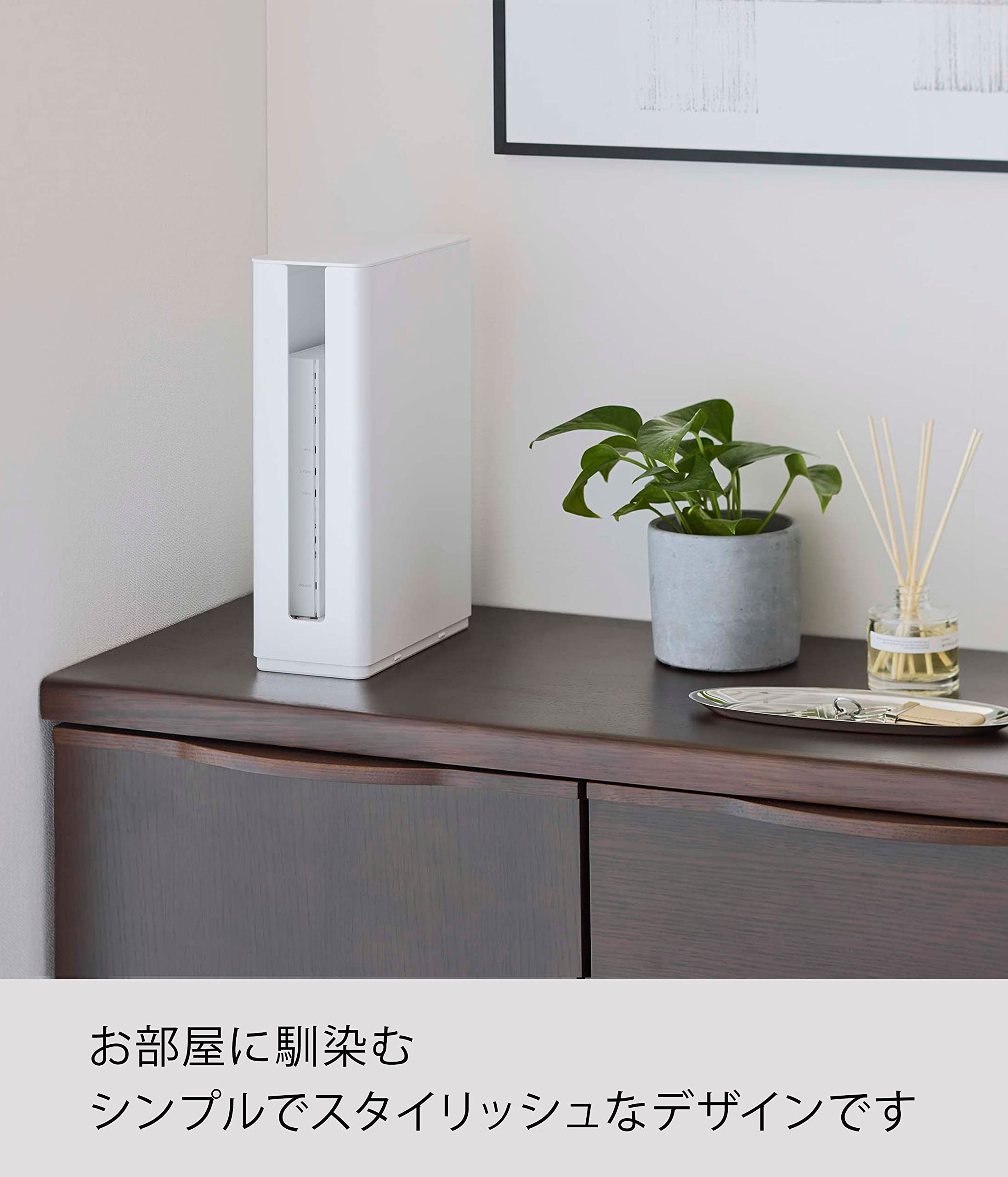 山崎実業(Yamazaki) 重ねられる スリム 蓋付き ルーター収納 ケース ロング ホワイト 約W9.7XD20.2XH30.2(蓋含む)cm スマート smart 浮かせて収納できる デットスペースを有効活用 5750