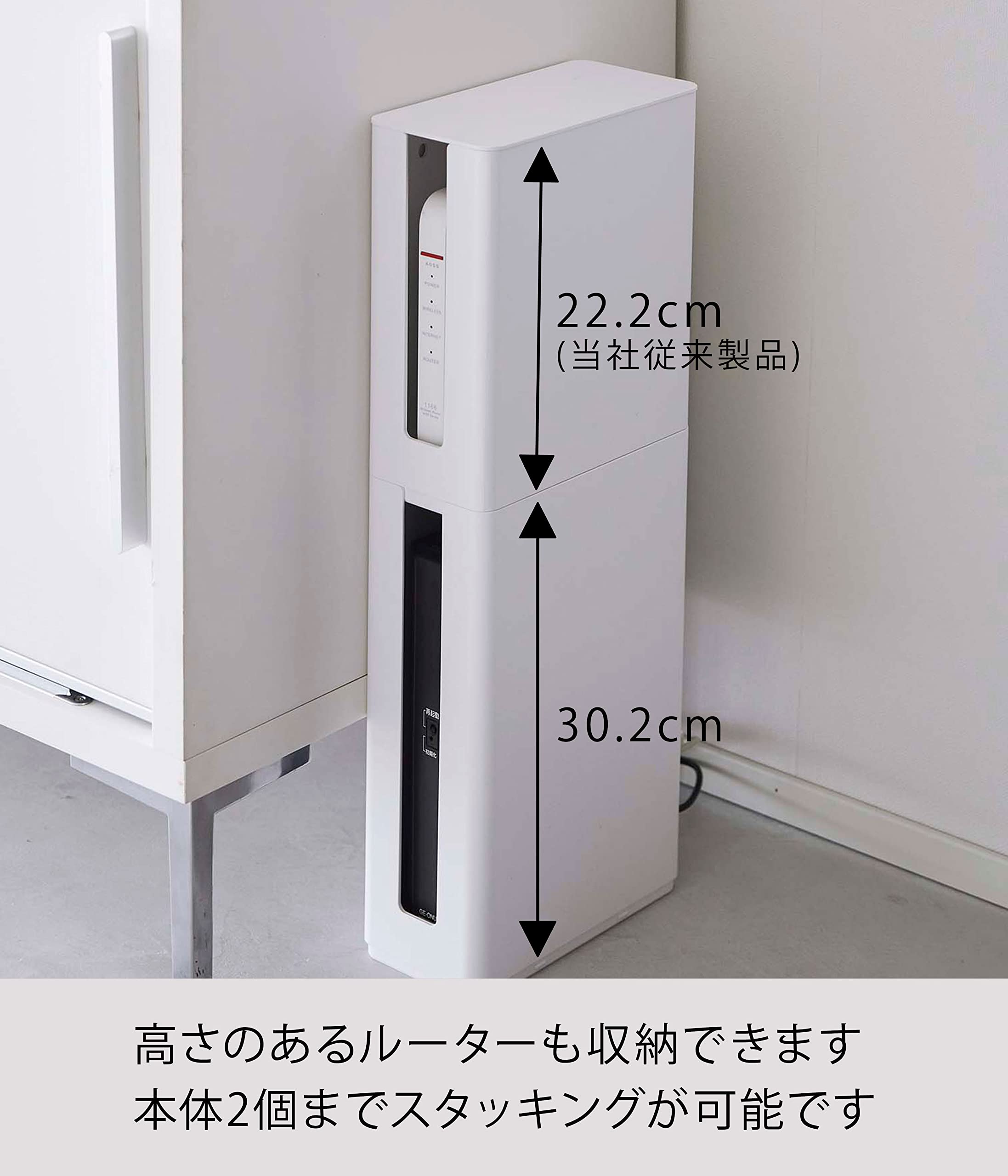 ※写真のイメージは、重ねられるスリム蓋付ルーター収納ケース(別売)と組み合わせた例です。
