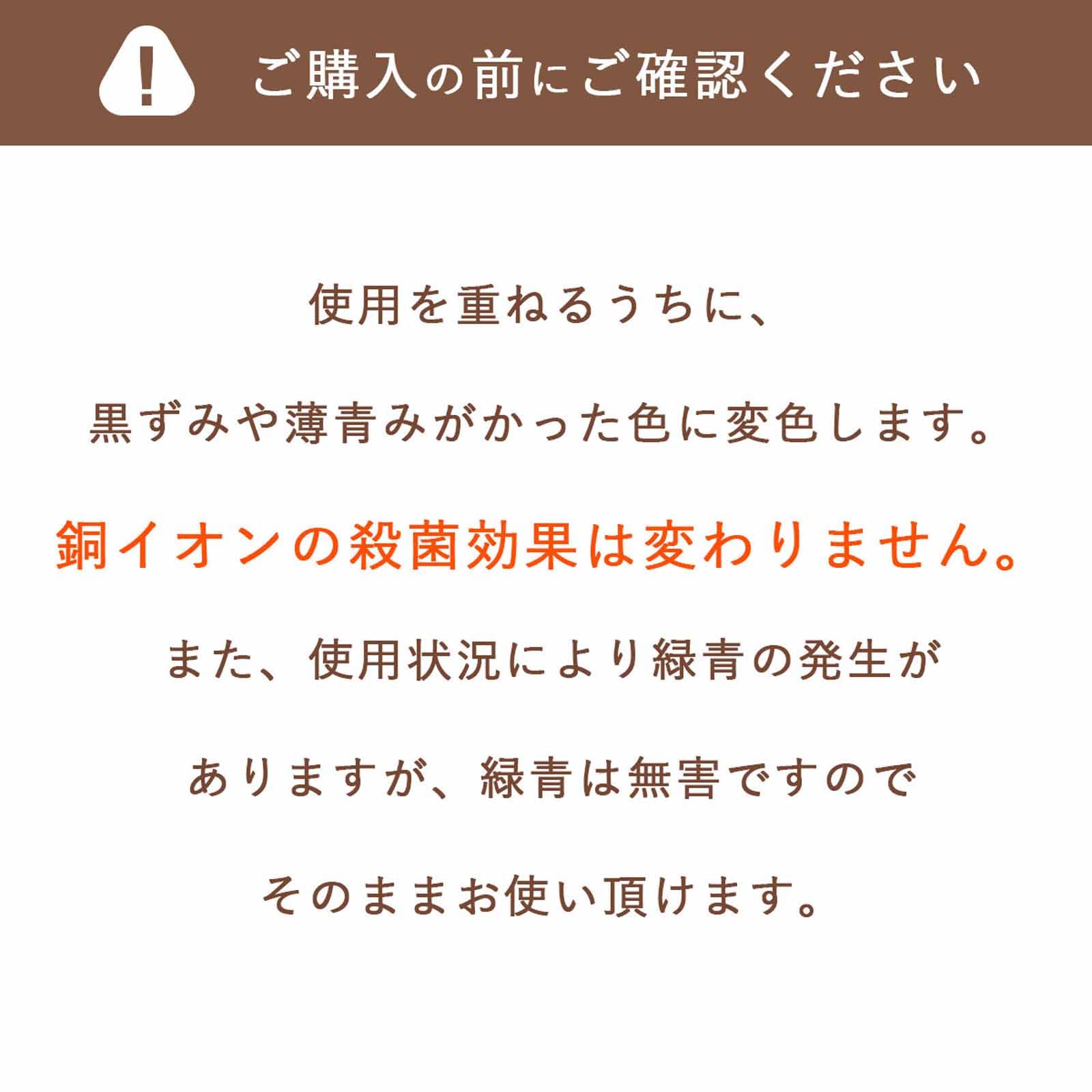 ※銅は時間とともに変色しますが効果は変わりません