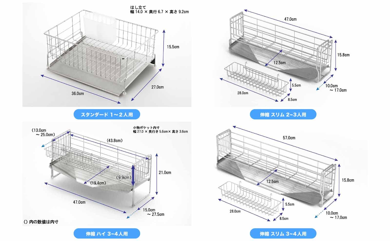 ヨシカワ 水切りラック 水切りかご 日本製 幅26×奥行57cm 7~8人用 シンクサイド 幅の広がる 1306055 食器 水切り カゴ 台所 シンク トレー キッチン バスケット