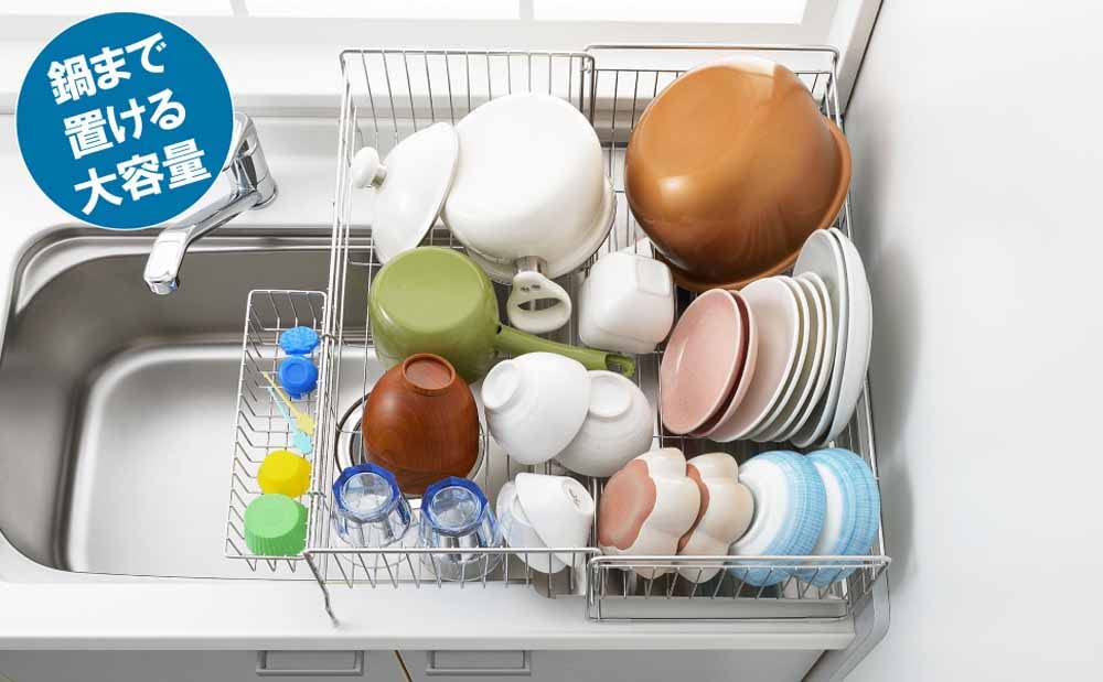 【数量限定】ヨシカワ 水切りラック 水切りかご 日本製 幅26×奥行57cm 7~8人用 シンクサイド 幅の広がる 1306055 食器 水切り カゴ 台所 シンク トレー キッチン バスケット