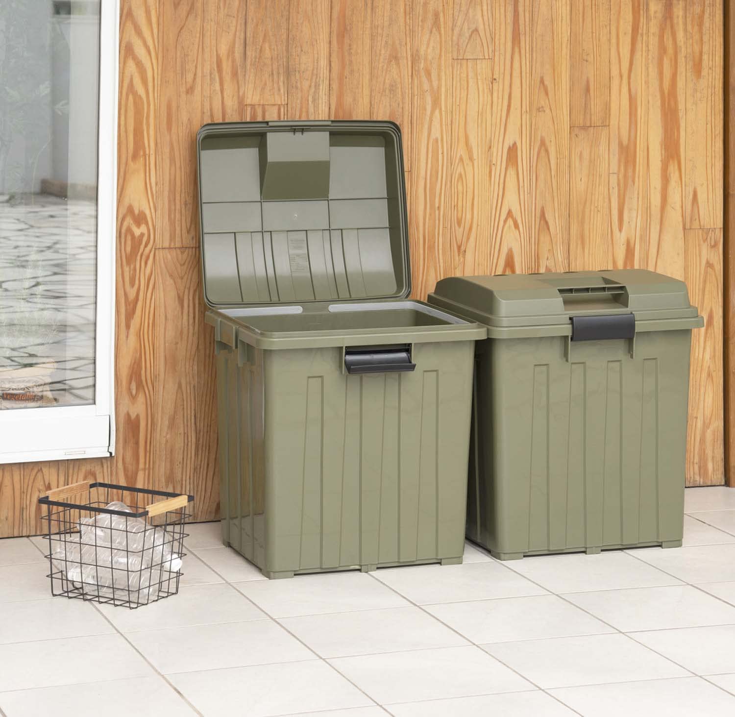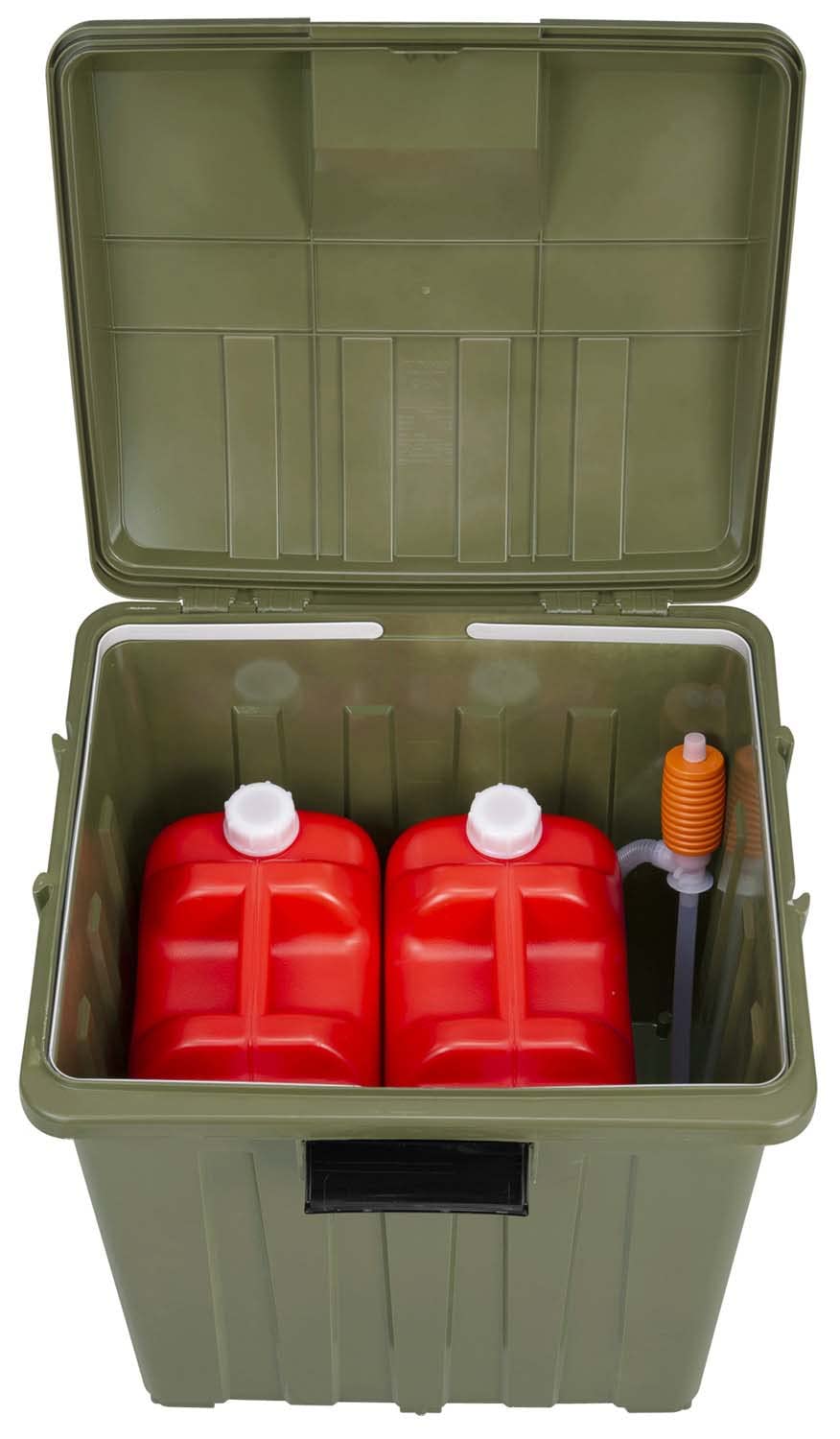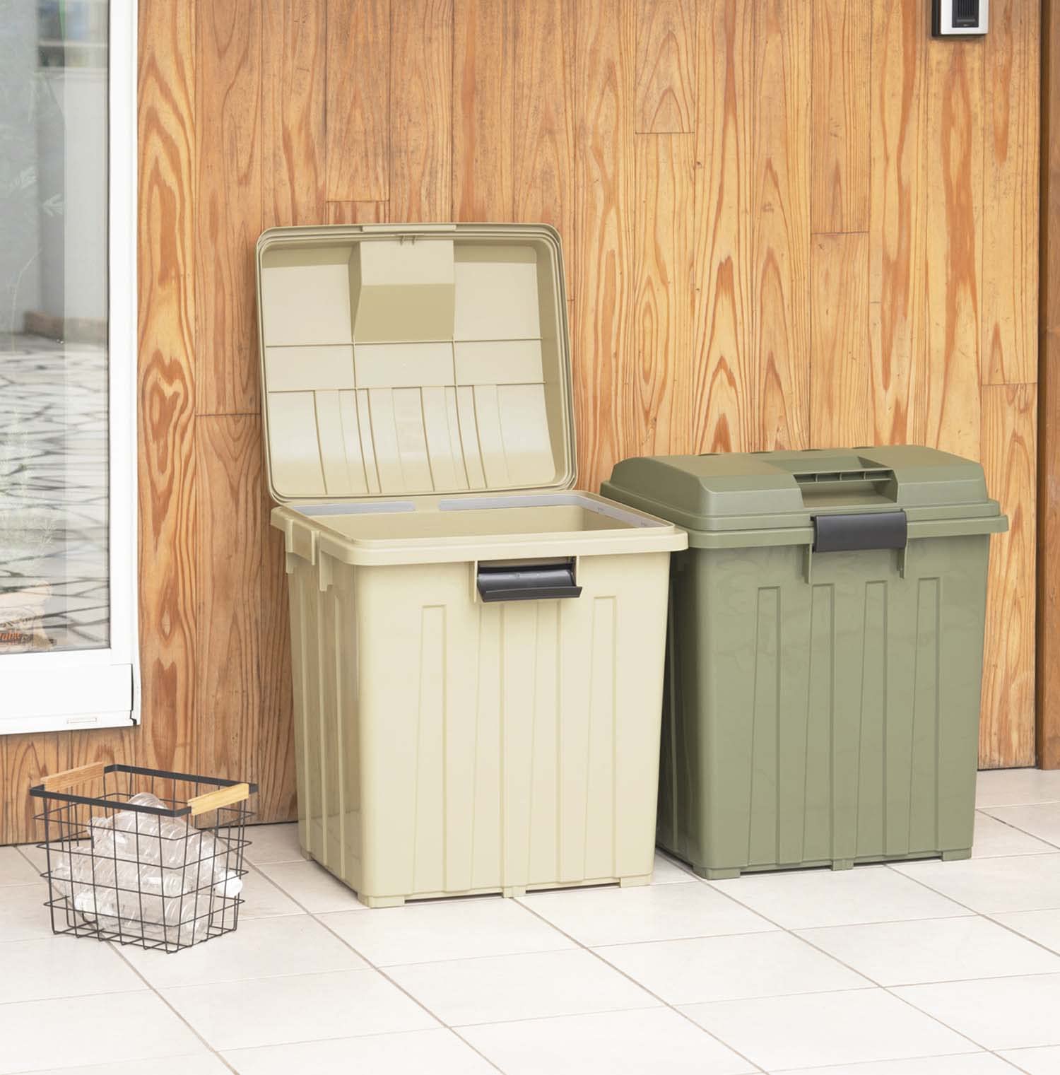 異なるカラーでわかりやすく分別できる<br>灯油缶18Lが2個収納可能、べランダコンテナとしても活躍