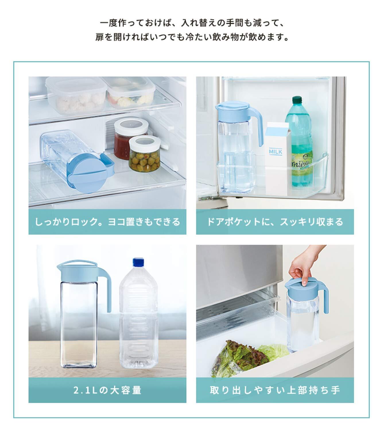 完全密封で横置き可能な冷水筒「ドリンク・ビオ」2.1L