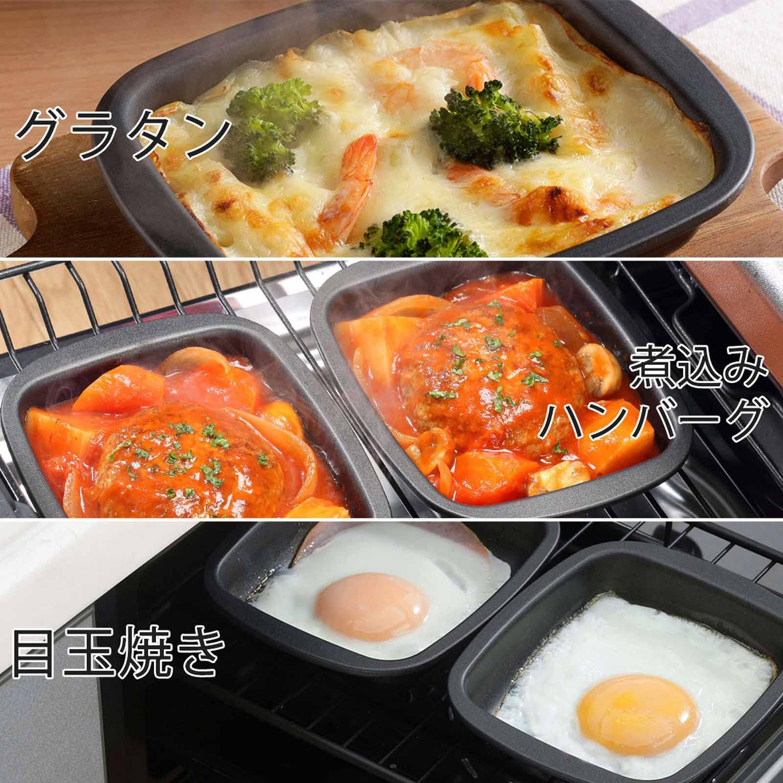 下村企販 グリルパン モーニングパン 2個組 【日本製】 魚焼きグリル トースター使用可 手軽に1品作れる フッ素加工 こびりつきにくい グリルトレイ 時短調理 ハンバーグ 目玉焼き 煮込み料理 グラタン 小サイズ グリルdeクック ブラック スチール 燕三条 37905