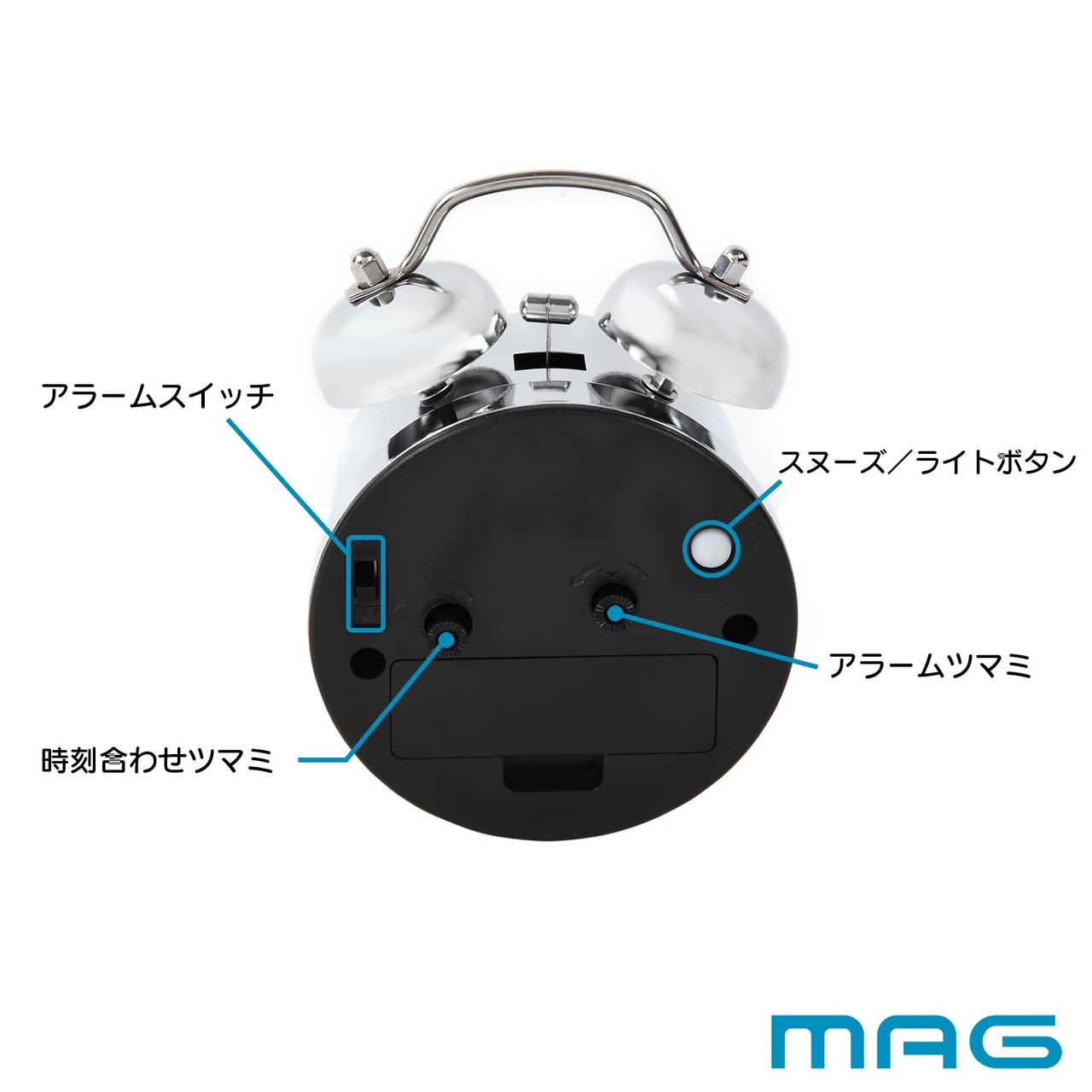 【最新商品】MAG(マグ) 目覚まし時計 置き時計 小型 小さい かわいい ツインベル アナログ 静音 連続秒針 ベル音 アラーム スヌーズ ライト シルバー ベルズミニDX T-765 S-Z ノア精密