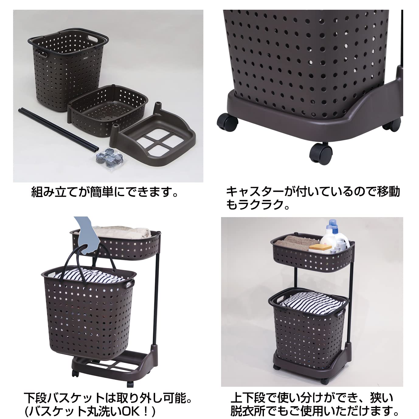 JEJアステージ(JEJ Astage) 収納ラック レクエア ランドリーバスケット 2段 ダークブラウン 日本製 簡単組み立て 幅45×奥行35×高さ78.5cm