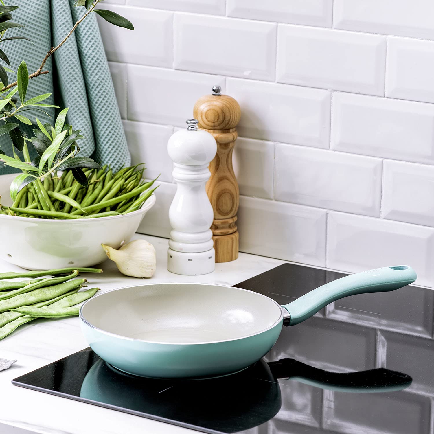 グリーンパン(Greenpan) グリーンシェフ フライパン 20cm IH 対応 セラミック加工 内外面こびり付きにくくてお手入れ簡単 有害物質不使用 アースカラー ミントグリーン