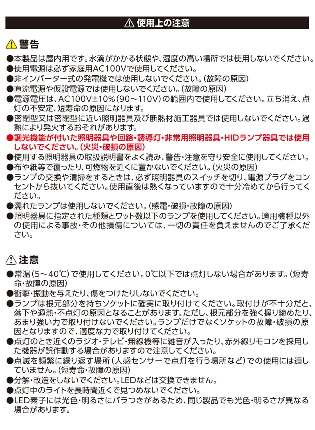 ②調光機能が付いた器具(100%設定でも使用不可)