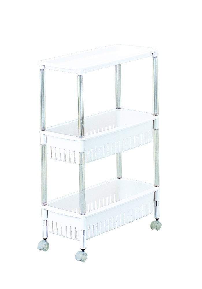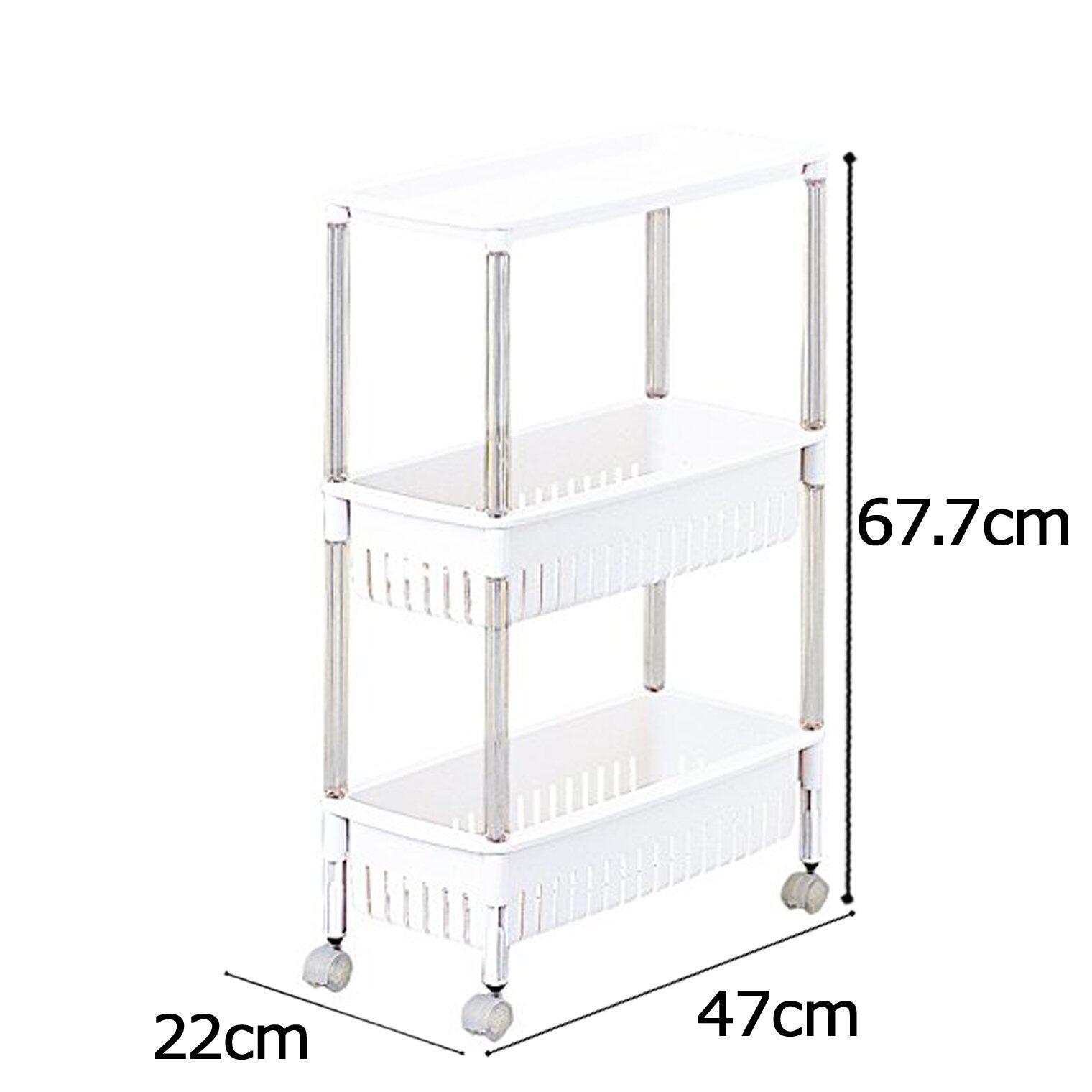 サンコープラスチック(SankoPlastic) すき間収納 オフホワイト 約幅22×奥行47×高さ68cm テーブルワゴン 3段 スリム