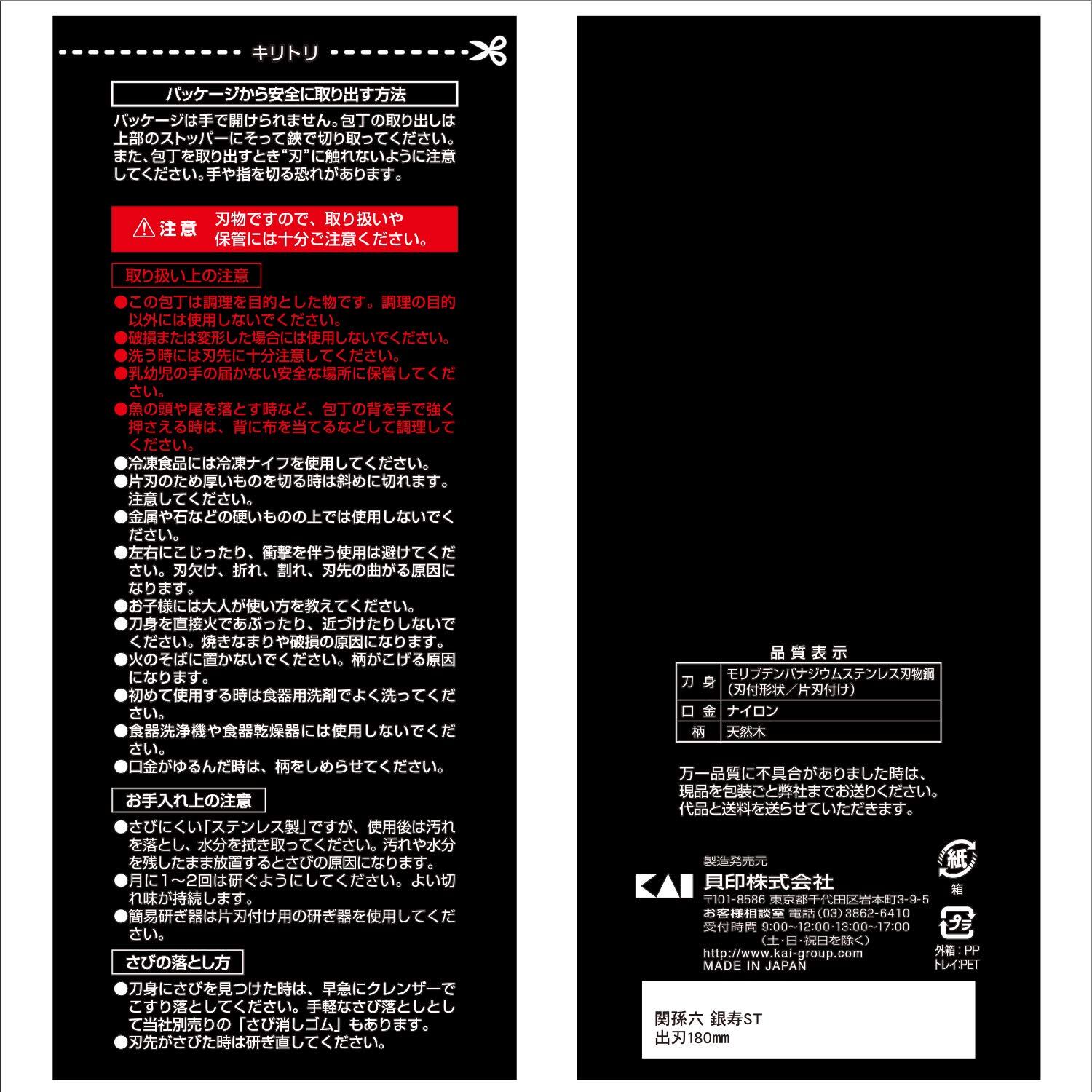 貝印 KAI 出刃包丁 関孫六 銀寿 ステンレス 180mm 日本製 お手入れ簡単 AK5064