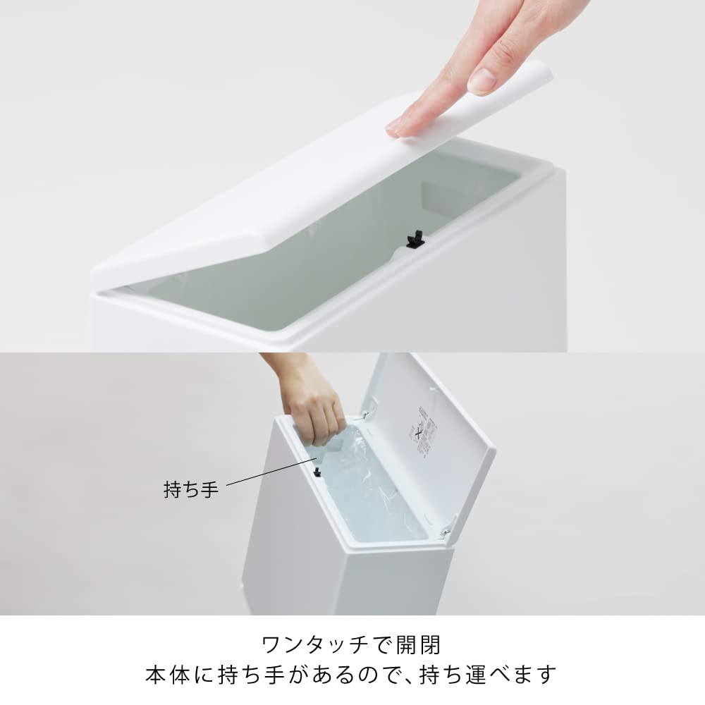 コンパクトなキッチンに最適なサイズのフタ付きゴミ箱。ワンプッシュで開閉できる横型のデザイン