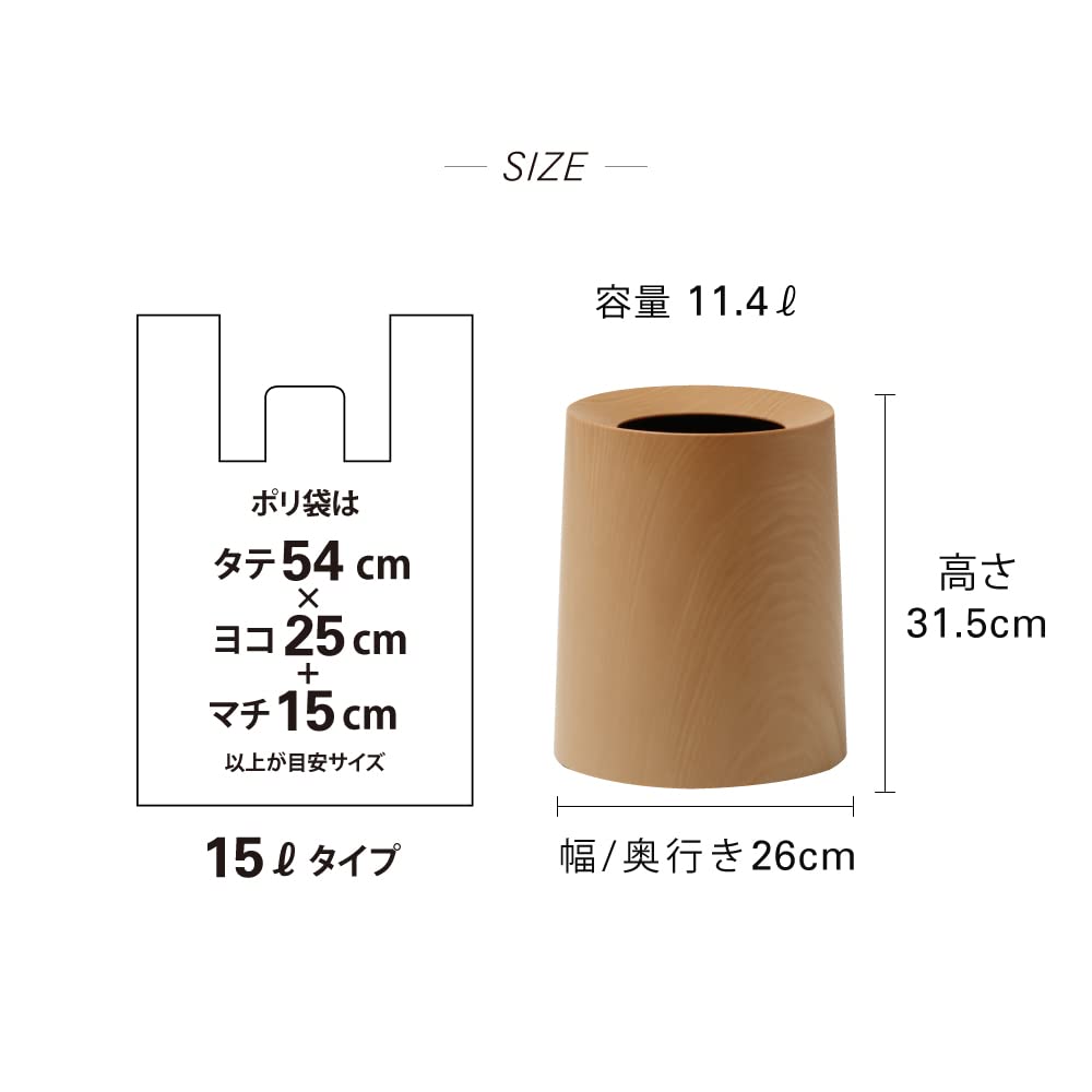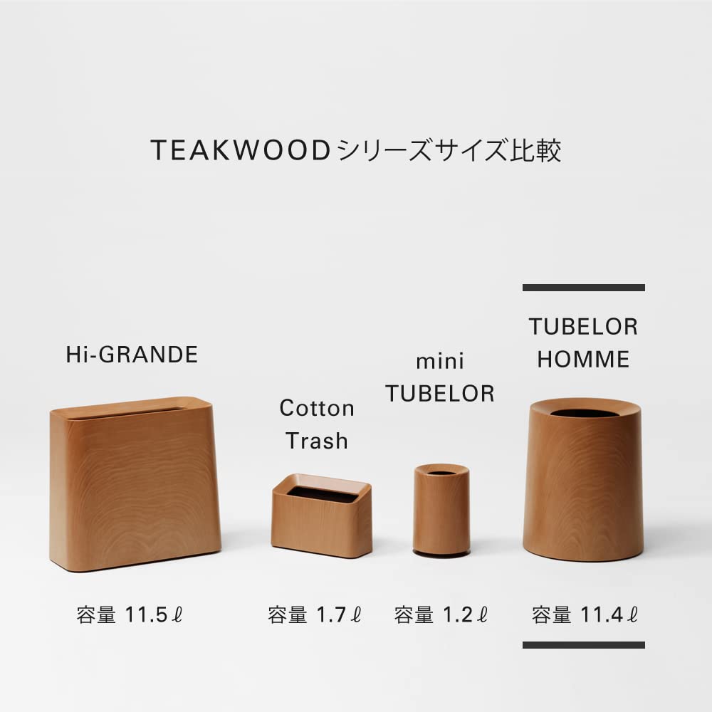 ideaco(イデアコ) ゴミ箱 丸型 11.4L 直径26✕高さ31.5cm TUBELOR HOMME teakwood (チューブラー オム チークウッド)