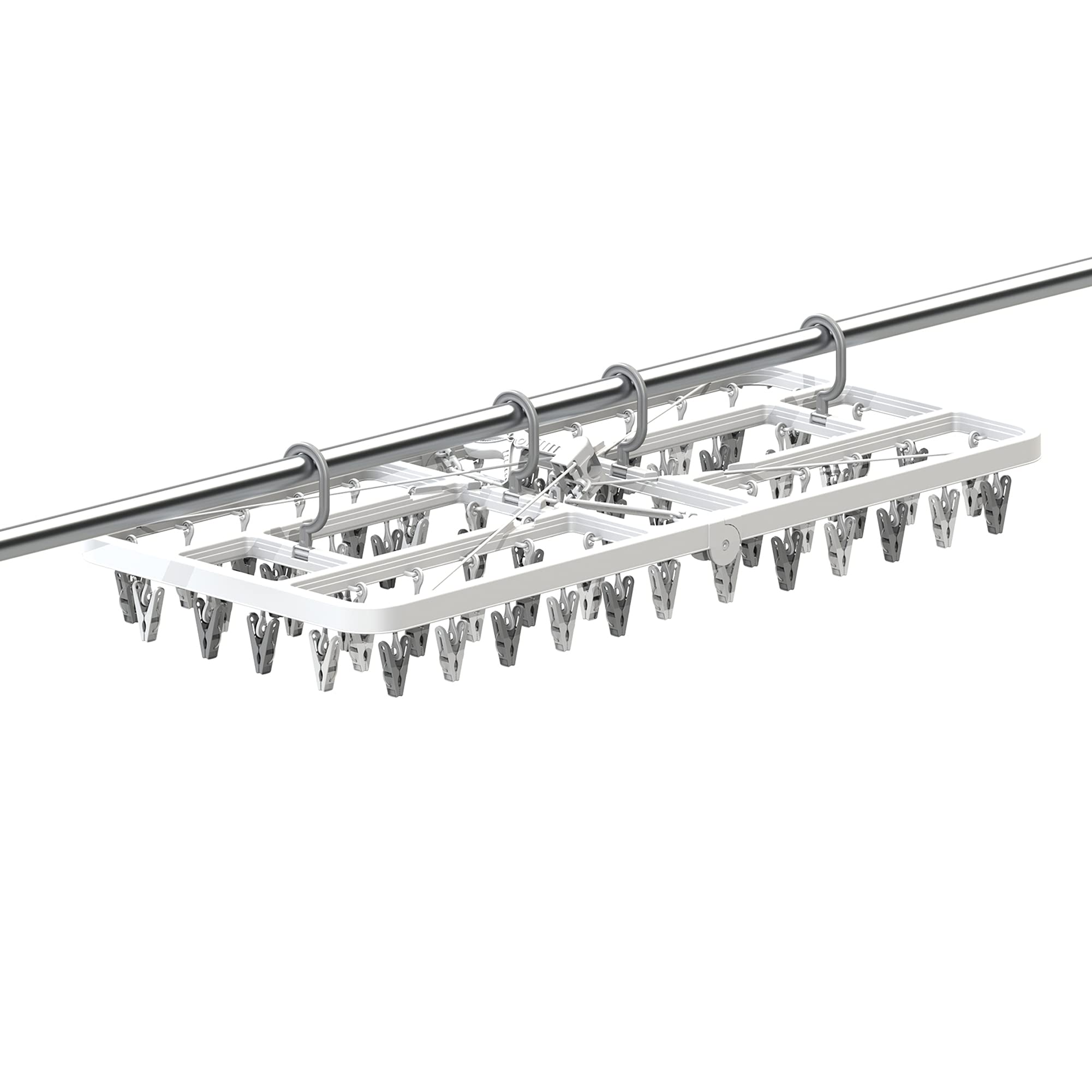 ●キャッチ&フックを上手に使い分け!サイドフックで低竿対応、長い洗濯物も床につきにくい!
