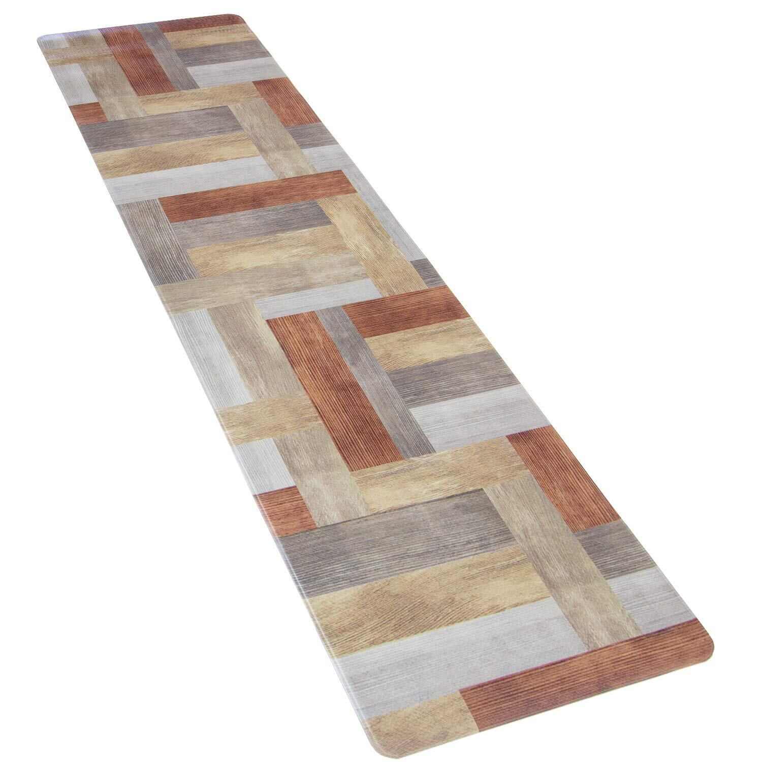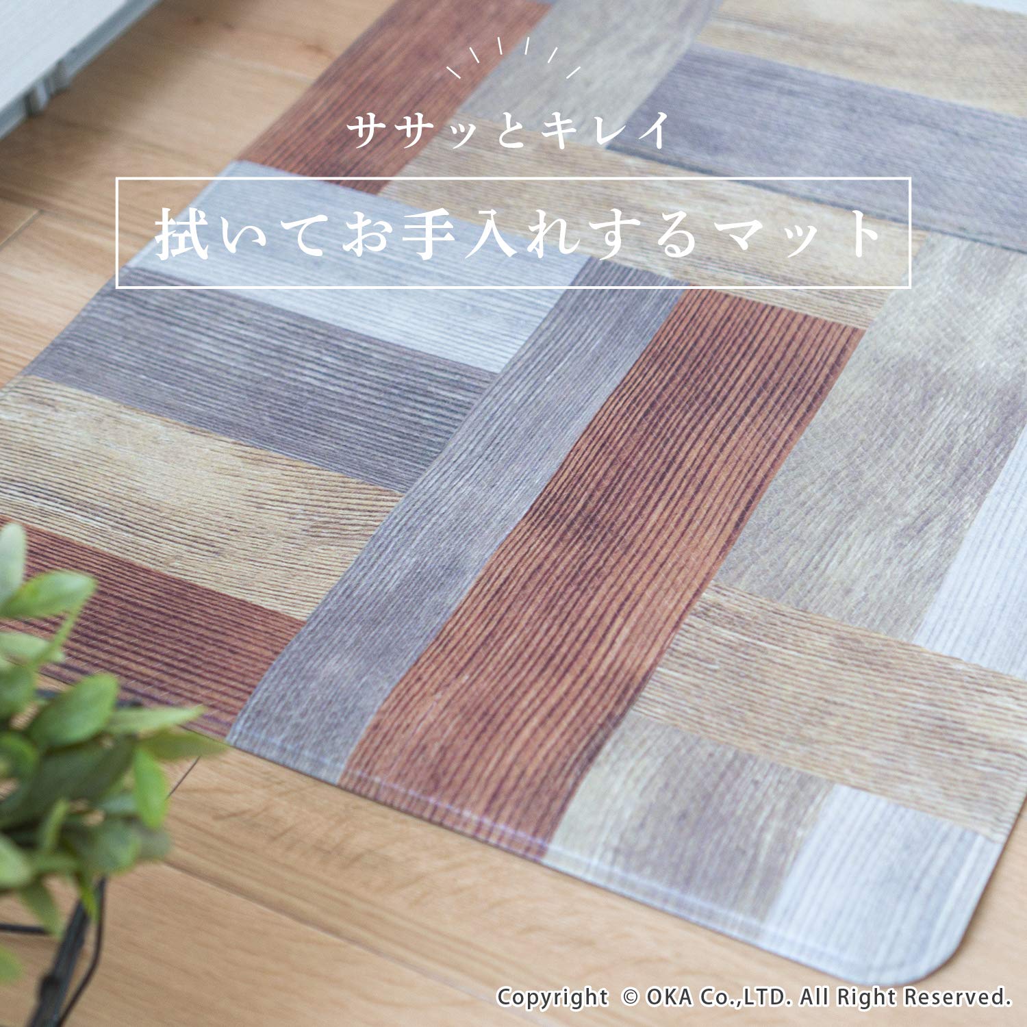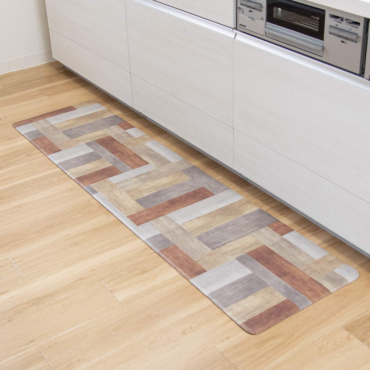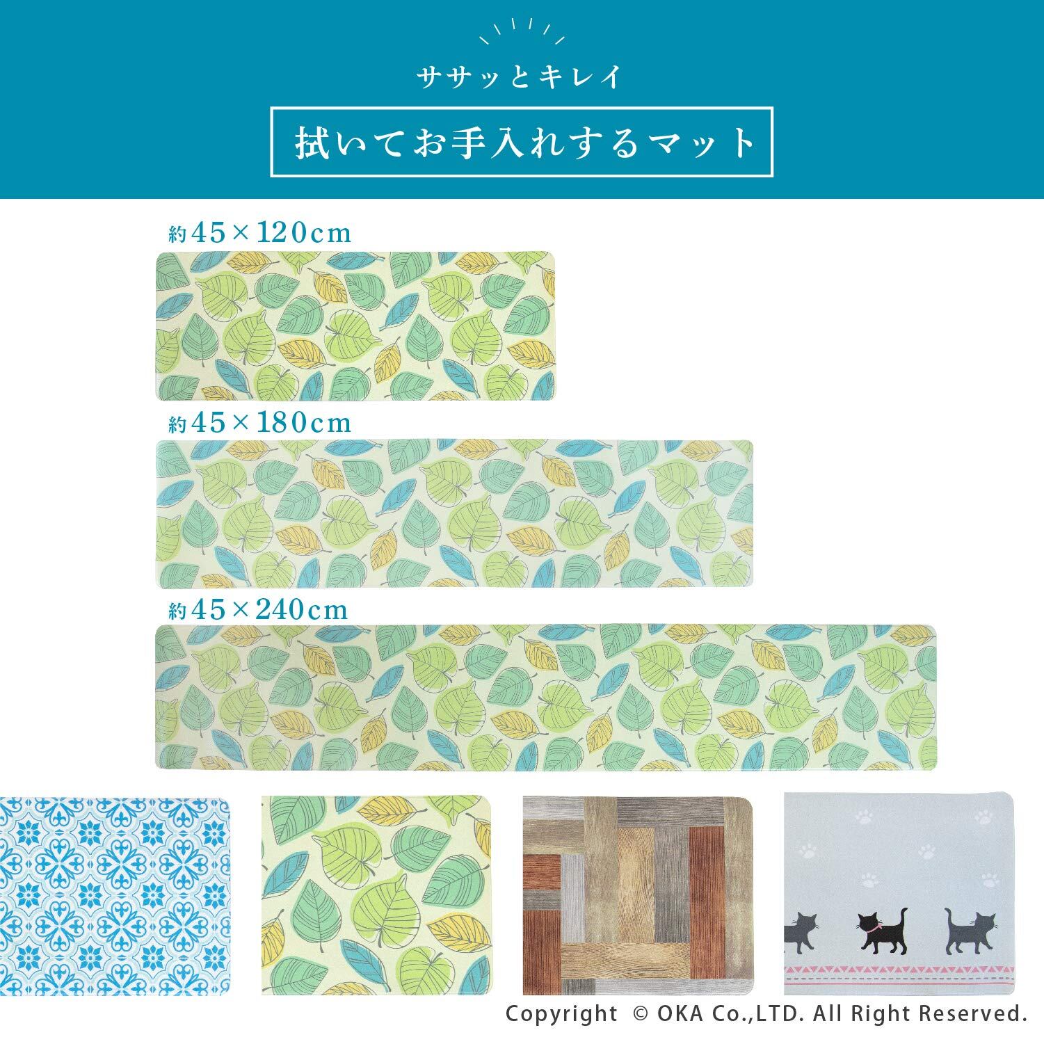 オカ(OKA)) 拭けるキッチンマット 約45cm×180cm ブラウン(ウッド)(拭くだけ PVC ビニール)