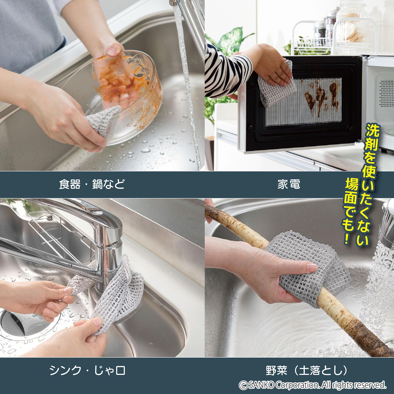 クリーナー繊維は特殊加工を施しており、抗菌加工、水だけでも汚れが落とすことができます。頑固な汚れには少量の洗剤を併用ください。