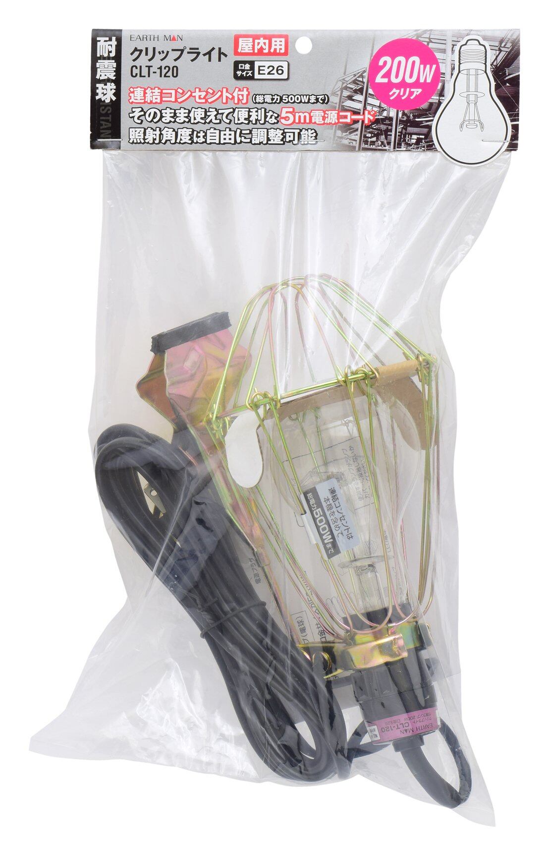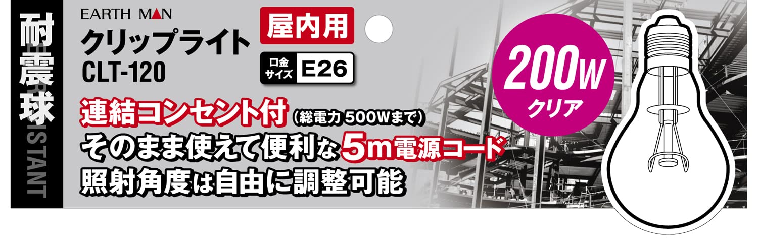 高儀(Takagi) EARTH MAN クリップライト200W耐震球 CLT-120【連結コンセント付】【口径E26】【照射角度調整】作業用 工事用 現場 ライト 照明 投光器 植物育成