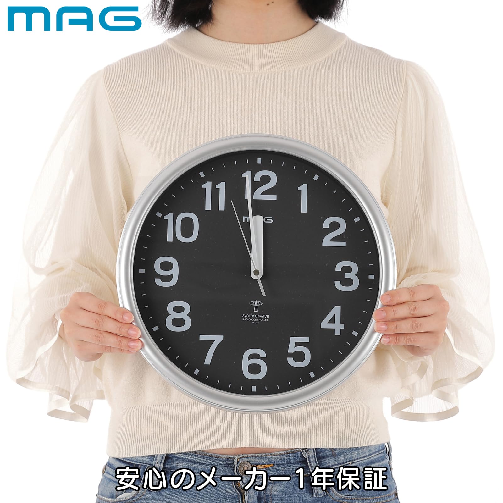 MAG(マグ) 掛け時計 電波時計 アナログ ナオス ステップ秒針 夜間秒針停止機能付き シルバー メタリック W-781SM-Z