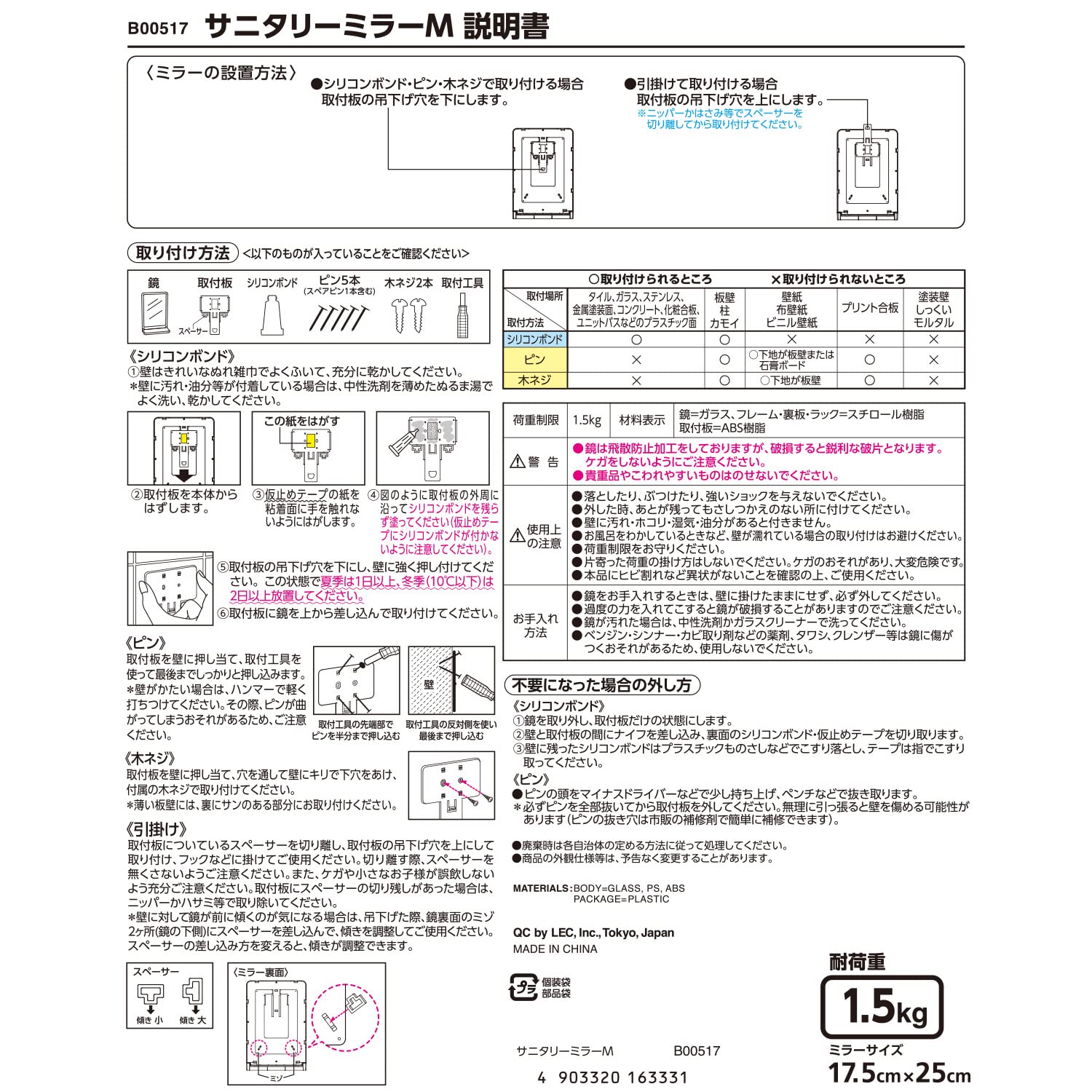レック サニタリーミラー M 鏡サイズ:17.5×25cm B00517